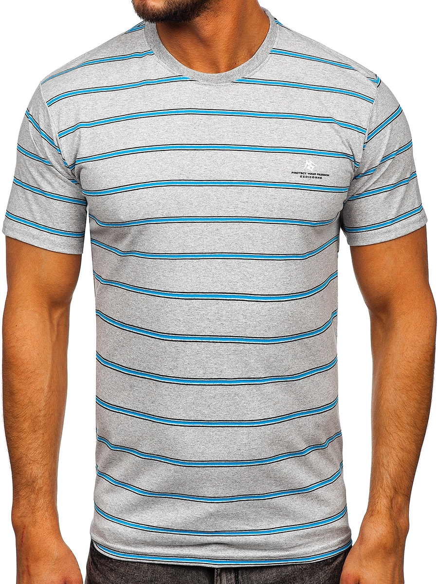 Cool grå herr T-shirt 14952 från Bolfs kollektion. Den finns i åtta olika färger vilket gör det lätt att matcha färg till din outfit. Rakt skuren T-shirt med rund hals, passar alla kroppsformer. Den är tillverkad av 100% bomull, vilket gör den väldigt bekväm. Perfekt för sportiga stilar och som komplement till många olika vardagsstilar. Ska du ut med vännerna, använd ihop med jeans och en skinnjacka. Lägg till sweatpants och en sweatshirt för att skapa en sportig stil.