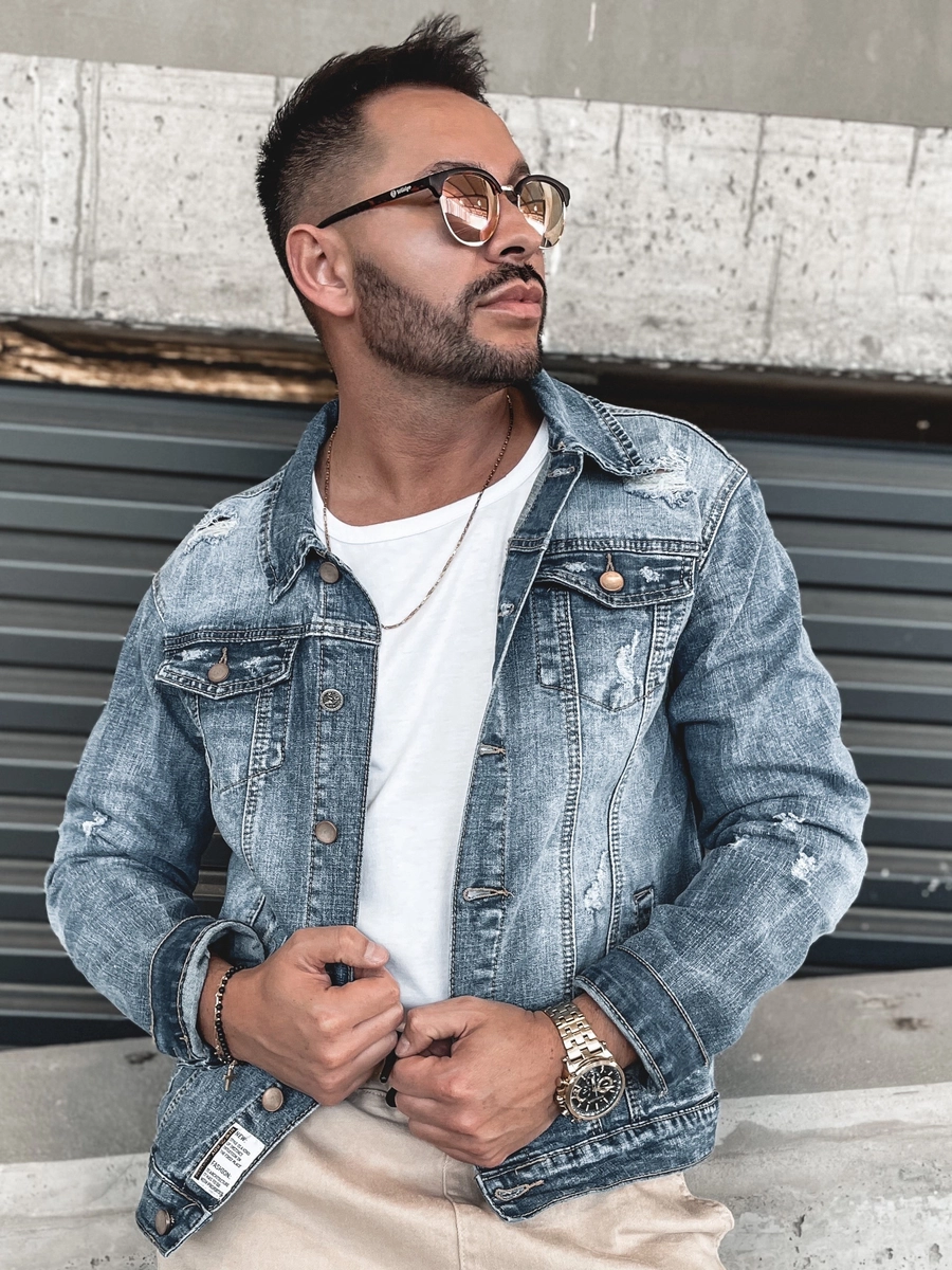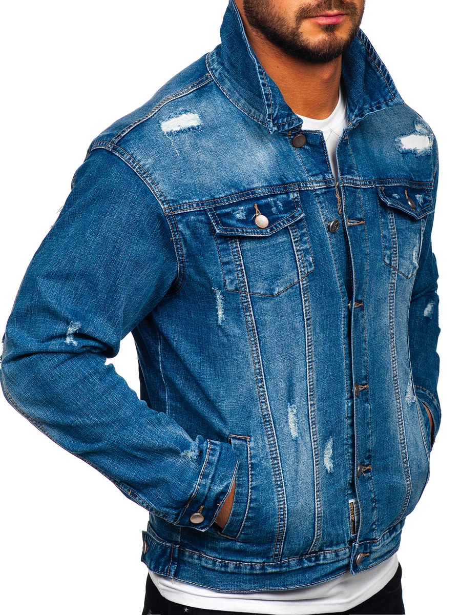 Klassisk blå herrjeansjacka MJ507B från Bolfs kollektion. Snygga nötningar ger den en unik karaktär. Den stängs med knappar och har en ståkrage. De har två fickor med knapp och två sidofickor utan stängning. Ärmarna är justerbara med knappar vilket ger ett bra skydd mot kyla och vind. Samtidigt finns ett annat praktiskt inslag, slitsar med tryckknappar nertill. Den blå jeansjackan har ett användbart snitt. Jeans är alltid trendigt, så en jeansjacka passar perfekt till vilken outfit som helst. Kombinera med joggers, jeans eller för en ledigare stil med sweatpants.