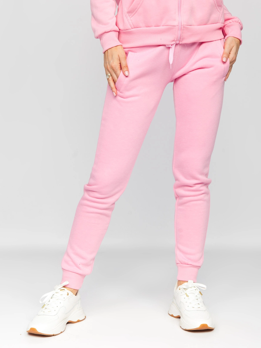 En "måste-ha" rosa damset 0003 från Bolfs kollektion. Setet består av sweatshirt och sweatpants. Denna tröja stängs med en dragkedja, har en justerbar huva och två fickor. Byxorna är reglerbara i midjan med en kraftig resår och dragsko. De har två fickor fram och bensluten har mudd vilket säkerställer perfekt passform. Ett enkelt snitt med bra passform ger dem ett sportigt utseende. Den är tillverkad av mjukt och skönt material för en god bekvämlighet. Träningsoverallen i sig skapar en idealisk, sportig outfit, perfekt inte bara för träning, utan också för en ledig dag hemma eller en resa till bergen. Du kan använda den ihop med en lättviktsjacka, en sportig jacka eller en väst.