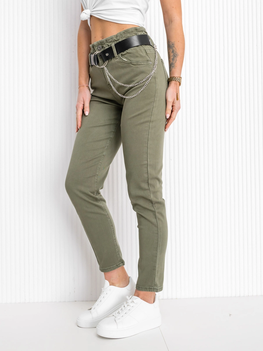 Snygga kaki damjeans med hög midja och bälte LA689 från Bolfs kollektion. Jeansbyxor med dragkedja och två knappar. Setet inkluderar ett snyggt och praktiskt bälte. Byxorna har två fickor fram och två bak. Jeansbyxor är en perfekt bas för din dagliga outfit, de är ett tidlöst inslag i en moderiktig stil. Skapa en ledig stil genom att kombinera dem med en sweatshirt. Matcha dem med en tröja och en kappa och du har en perfekt outfit för en date!