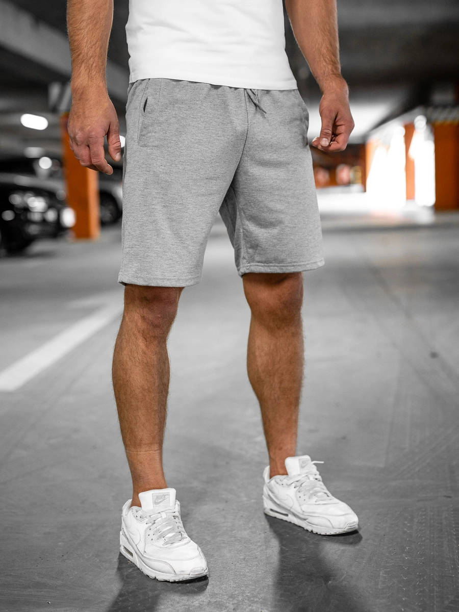 Fantastiska grå mjukisshorts 8K100 från Bolfs kollektion. Detta är ett av de mest trendiga typerna av shorts, vilket gör att de blir ett måste inför sommaren! Material av hög kvalitet ger en härlig känsla av komfort när de används, till och med under det mest krävande träningspasset. Tack vare två utvändiga fickor blir shortsen ännu mera praktiska. Perfekta för en urban outfit, kombinera med en T-shirt och en skinnjacka.
