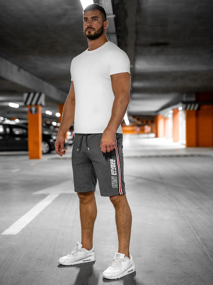 Snygga sportiga antrazitgrå/vita shorts från Bolfs kollektion. Dessa har bekväm passform, intressant tryck och passar till sommarens outfits. Den presenterade modellen kan matchas med en streetwearskjorta, en oversize sweatshirt och ett par sneakers.