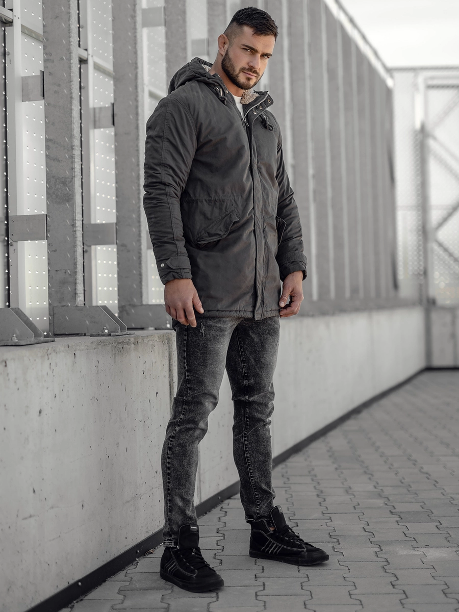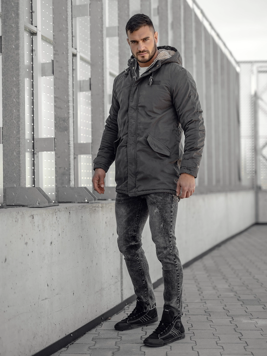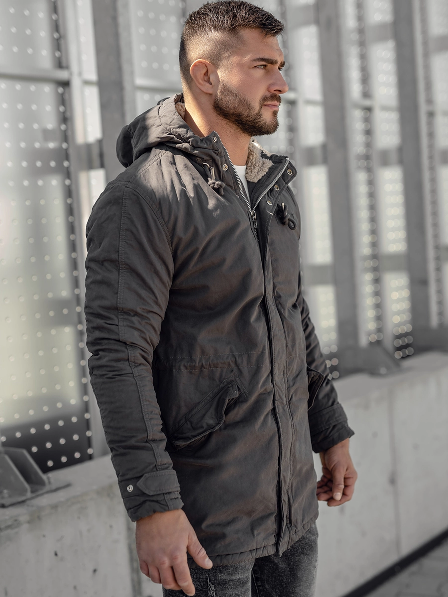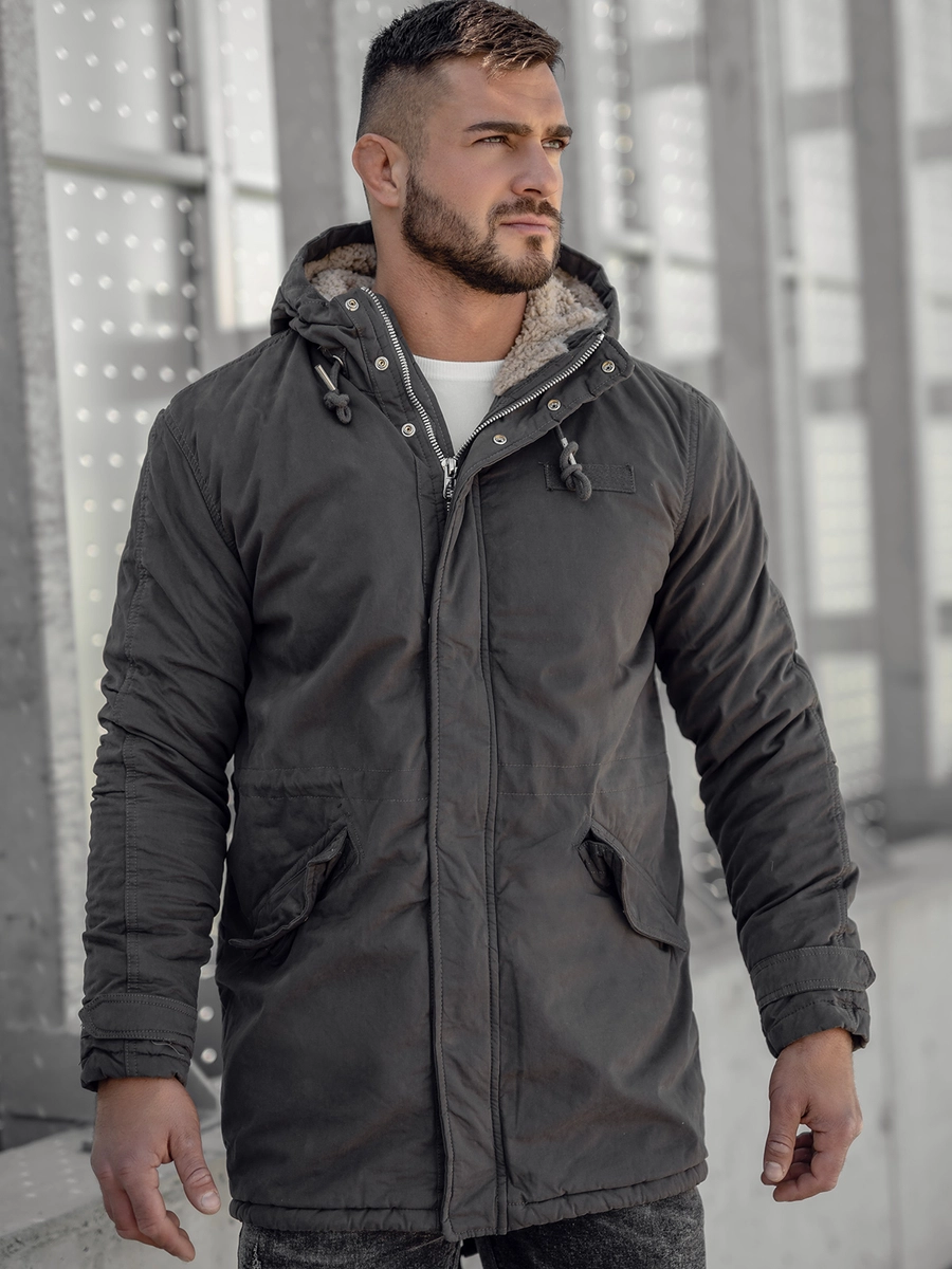 Bästsäljande grafitgrå herr vinterparkas EX838 från Bolfs kollektion. Gör ett läckert intryck. Den är väldigt snygg och praktisk. Fäste med dragkedja och snäpp. Justerbar isolerad huva fäst vid kragen. Jackan är justerbar invändigt i midjan så att du kan justera den efter hur du vill ha passformen. Två snäppfickor Ribbade ärmar från insidan med snäppreglering. Passar till flertalet stilar och andra klädesplagg. Passar bra både till arbete, shopping eller till andra vardagliga tillfällen. Den är väldigt snygg och iögonfallande. Använd med ett par jeans och en sweatshirt eller chinos, en skjorta och en tröja. Denna snygga modell lever upp till alla gentlemäns förväntningar. Den kan användas under kyliga dagar istället för en lättviktsjacka. Lite längre modell. Den värmer bra vid låga temperaturer. Passar perfekt till vardags eller en sportigare stil. Den här parkasen har en bekväm passform och är tillverkad av högkvalitativt material.