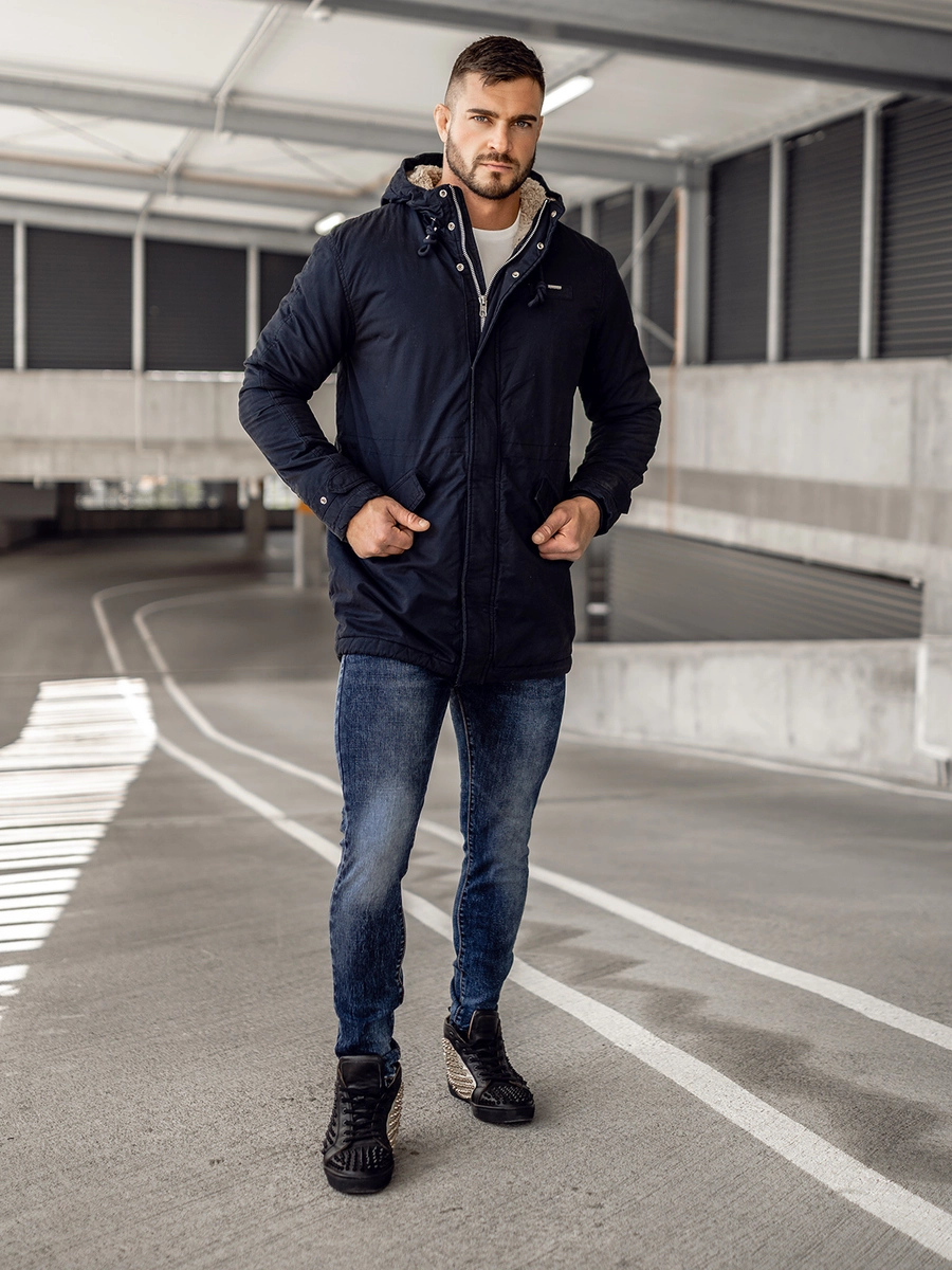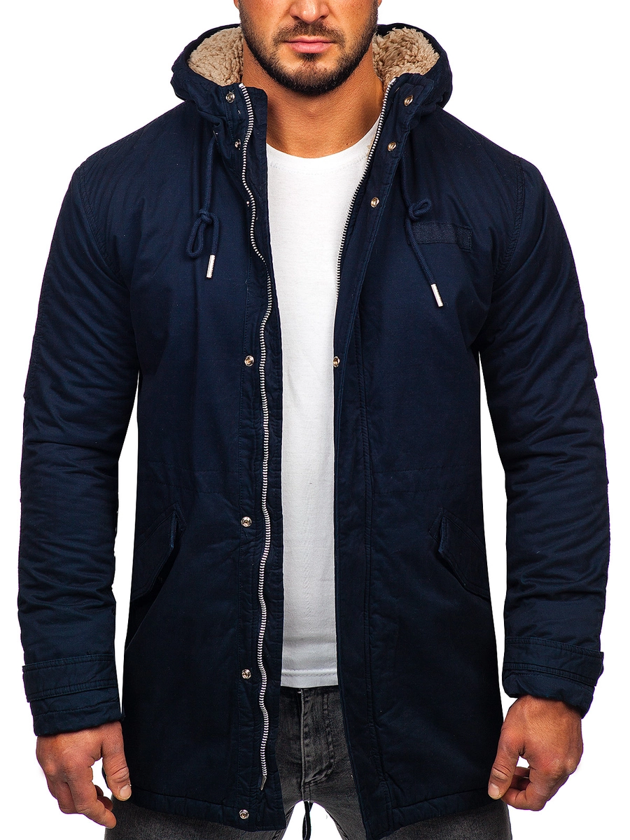Bästsäljande marinblå herr vinterparkas EX838 från Bolfs kollektion. Gör ett läckert intryck. Den är väldigt snygg och praktisk. Fäste med dragkedja och snäpp. Justerbar isolerad huva fäst vid kragen. Jackan är justerbar invändigt i midjan så att du kan justera den efter hur du vill ha passformen. Två snäppfickor Ribbade ärmar från insidan med snäppreglering. Passar till flertalet stilar och andra klädesplagg. Passar bra både till arbete, shopping eller till andra vardagliga tillfällen. Den är väldigt snygg och iögonfallande. Använd med ett par jeans och en sweatshirt eller chinos, en skjorta och en tröja. Denna snygga modell lever upp till alla gentlemäns förväntningar. Den kan användas under kyliga dagar istället för en lättviktsjacka. Lite längre modell. Den värmer bra vid låga temperaturer. Passar perfekt till vardags eller en sportigare stil. Den här parkasen har en bekväm passform och är tillverkad av högkvalitativt material.