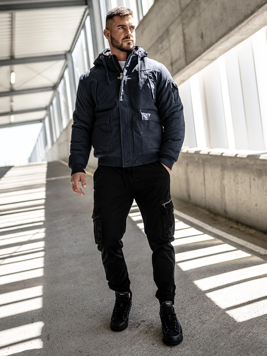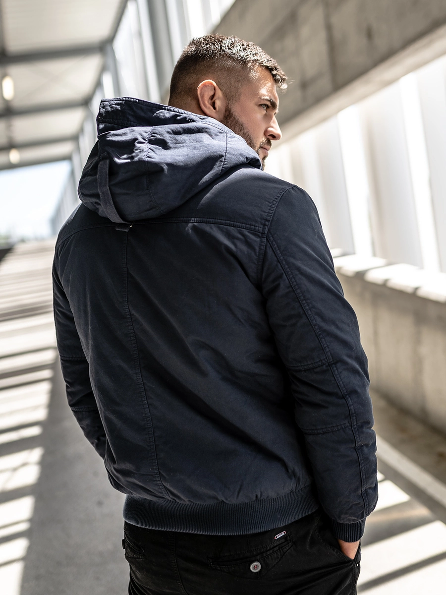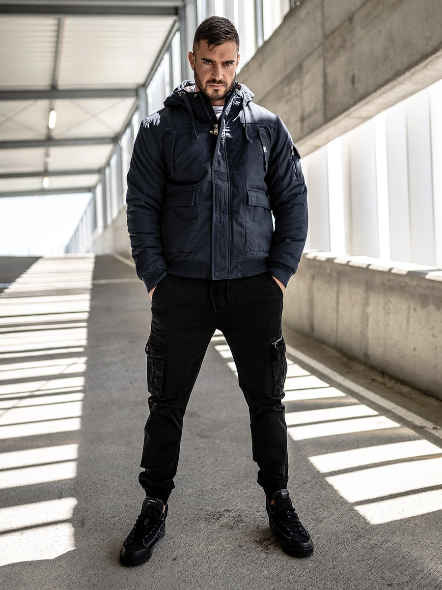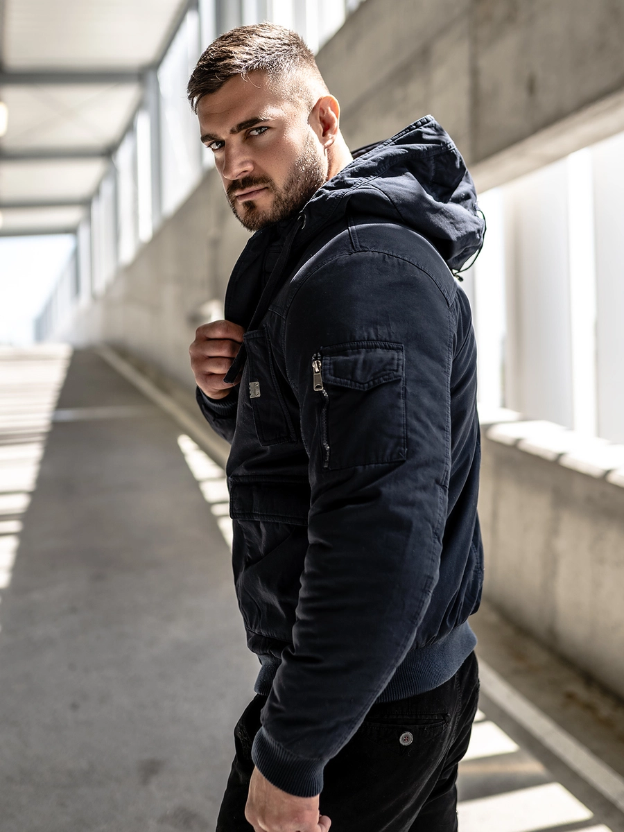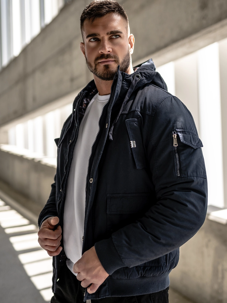 Bästsäljande marinblå herr vinterjacka 1890 från Bolfs kollektion. Den är fodrad och har både dragkedja och knappar. Justerbar huva. Passar perfekt till en snygg vardagsstil. Enfärgad. Bekväm och ger bra skydd mot blåst och kyla. Det finns flera praktiska fickor. Två cargofickor och två sidfickor. Den har två snäppfickor på utsidan och en inneficka Elastiska muddar nertill och på ärmarna. Passar väldigt bra till de senaste trenderna. Den är tillverkad av ett mjukt material som ger en skön känsla. Komplettera din vardagssnygga stil med denna! Passar många olika stilar. Den här modellen väljs ofta av de som uppskattar bra kvalitet och en snygg look. En av Bolfs bästsäljare! Passar bra både till arbete, shopping eller till andra vardagliga tillfällen. Den är snygg, bekväm och varm. Ett måste i varje vintergarderob. Den kommer tillfredsställa varje modeälskare. Den erbjuder behaglig värme. Den kommer att vara ett pålitligt plagg många år framöver.