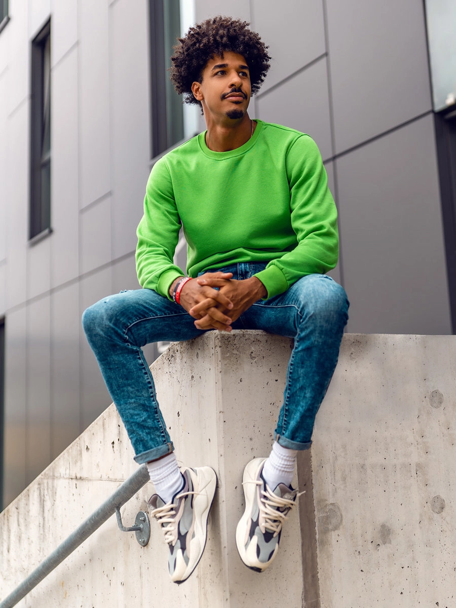 Basic ljusgrön herr sweatshirt 2001A från Bolf kollektionen. Den här modellen finns i flera olika färger. Den är designad för dig som uppskattar bekvämlighet och minimalistisk stil. Enkel, bekväm, hög kvalitet. Den är ett absolut, måste ha! Designen är rak och passar till olika stilar. Elastiska muddar nertill och på ärmarna. Den är tillverkat av ett mjukt, andningsbart material av hög kvalitet. Den kommer helt säkert uppfylla alla dina förväntningar oavsett vilken färg du väljer. Välj bland många fina färger. Passar bra hela året runt. Ska du ut med vänner? Shopping? Avslappning? Känn dig bekväm och snygg på en date. Använd tillsammans med ett par sweatpants eller shorts för att få en sportig look. Passar även bra ihop med ett par jeans eller joggers och en bomberjacka eller en klassisk läderjacka. En av våra TOP 10 Bästsäljande. Vi har även en dammodell. Få till den perfekta stilen med Bolfs W01 sweatshirt. Lägg till Bolf XW01 sweatpants för att göra din stil komplett.