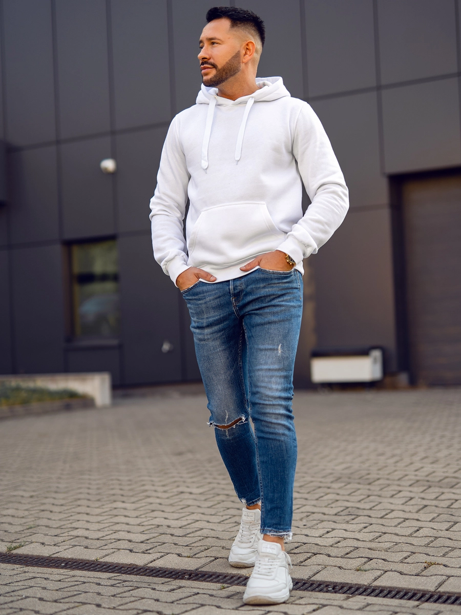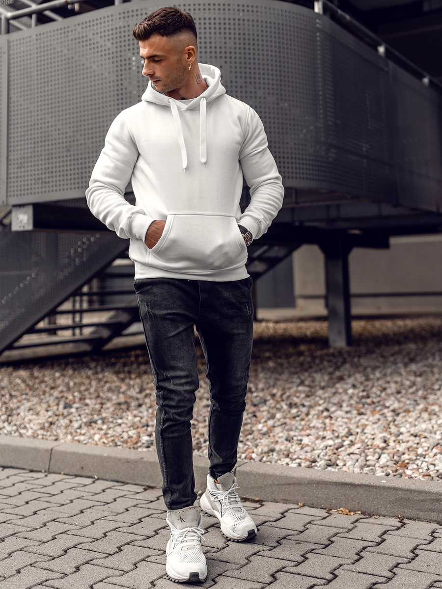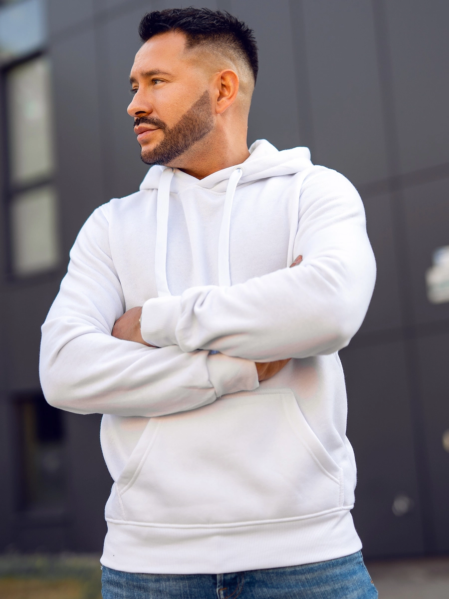 Snygg vit herrhuvtröja 2009A från Bolf kollektionen. Den har justerbar huva och en praktisk känguruficka framtill. Sportig look. . Den är tillverkad i ett mjukt skönt material i en enhetlig färg. Den här modellen kännetecknas av alla färger, den finns i mer än tjugo färgvarianter. Tack vare det är den lätt att matcha till många olika outfits. Passar bra hela året runt. Till många olika tillfällen. Shopping? Avslappning? Till och med för en spontan date passar den bra. Det här plagget passar varje dag, därför är den ett måste ha i varje mans garderob. Snygga färgglada färger. Den passar bra med jeans, cargobyxor eller joggers. Använd med ett par sweatpants eller en lättviktsjacka. Passar perfekt till träningspasset. Den här modellen väljs ofta av våra kunder. Kolla vad denna modell har fått för recensioner av influensers. Den lockar med bra utförande och ett bra pris jämfört med konkurrenterna. Denna sweatshirt har även sin motsvarighet bland dammodellerna, där den också slår rekord i populäritet.