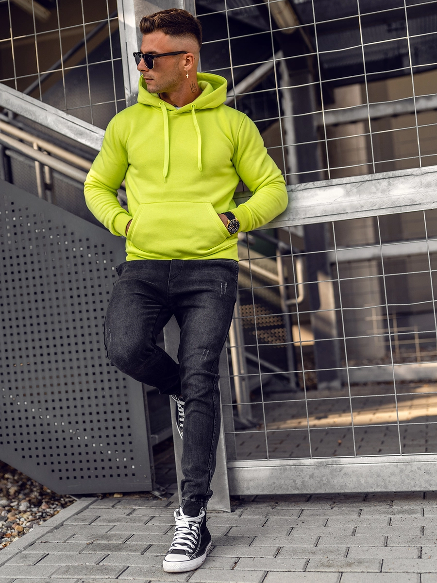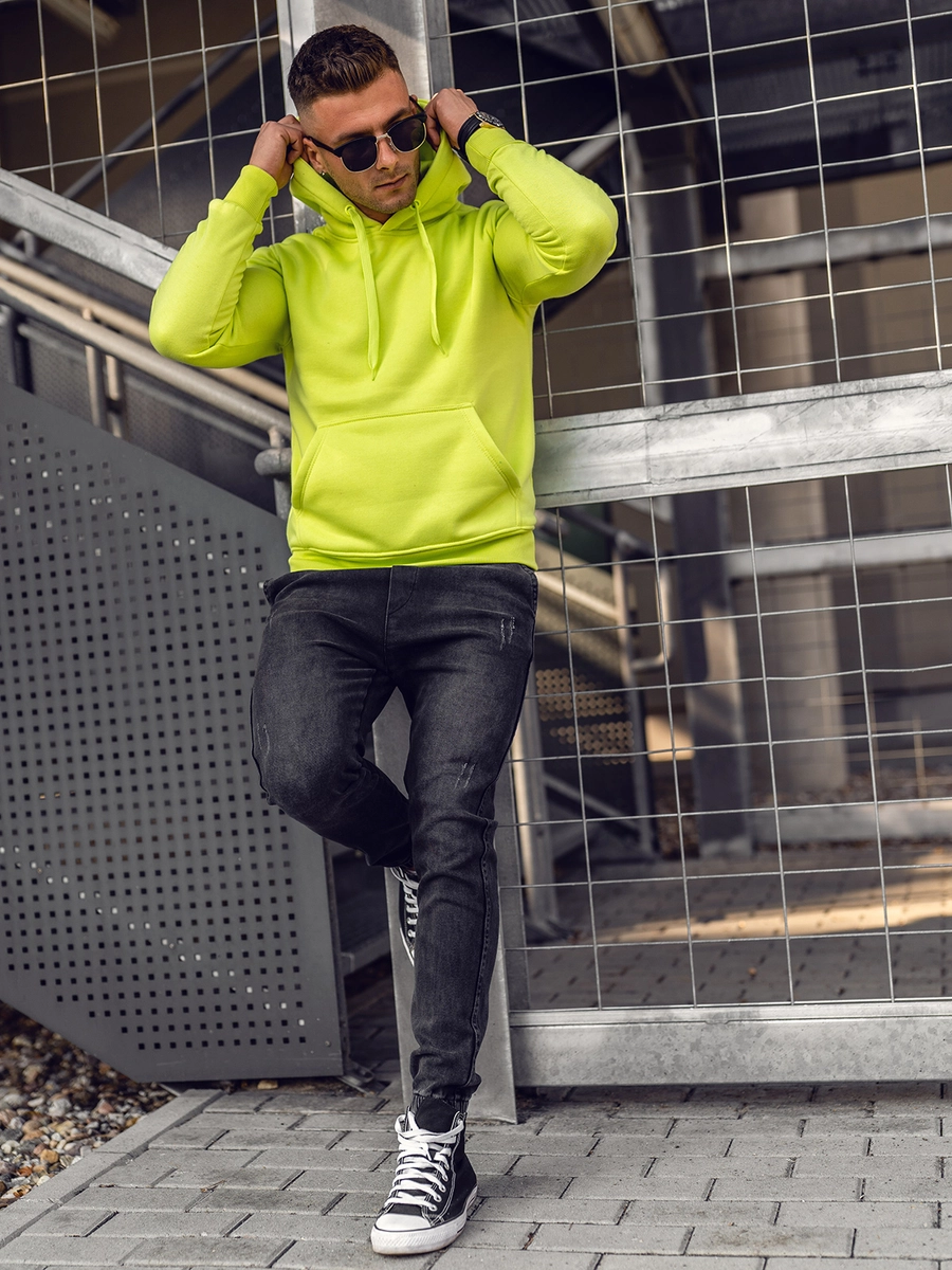 Snygg neongrön herrhuvtröja 2009A från Bolf kollektionen. Den har justerbar huva och en praktisk känguruficka framtill. Sportig look. . Den är tillverkad i ett mjukt skönt material i en enhetlig färg. Den här modellen kännetecknas av alla färger, den finns i mer än tjugo färgvarianter. Tack vare det är den lätt att matcha till många olika outfits. Passar bra hela året runt. Till många olika tillfällen. Shopping? Avslappning? Till och med för en spontan date passar den bra. Det här plagget passar varje dag, därför är den ett måste ha i varje mans garderob. Snygga färgglada färger. Den passar bra med jeans, cargobyxor eller joggers. Använd med ett par sweatpants eller en lättviktsjacka. Passar perfekt till träningspasset. Den här modellen väljs ofta av våra kunder. Kolla vad denna modell har fått för recensioner av influensers. Den lockar med bra utförande och ett bra pris jämfört med konkurrenterna. Denna sweatshirt har även sin motsvarighet bland dammodellerna, där den också slår rekord i populäritet.