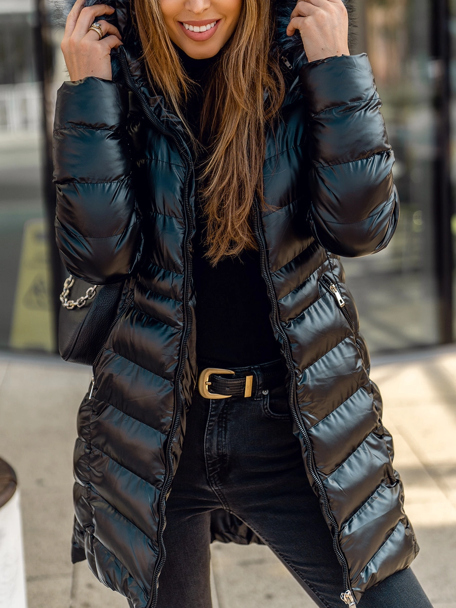 Feedback från kunder Dam Lång Quiltad Vinterjacka med huva Svart Bolf 7076