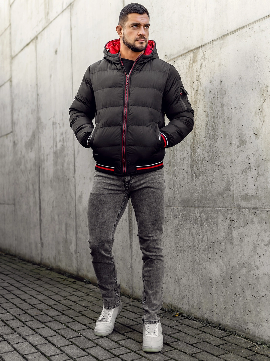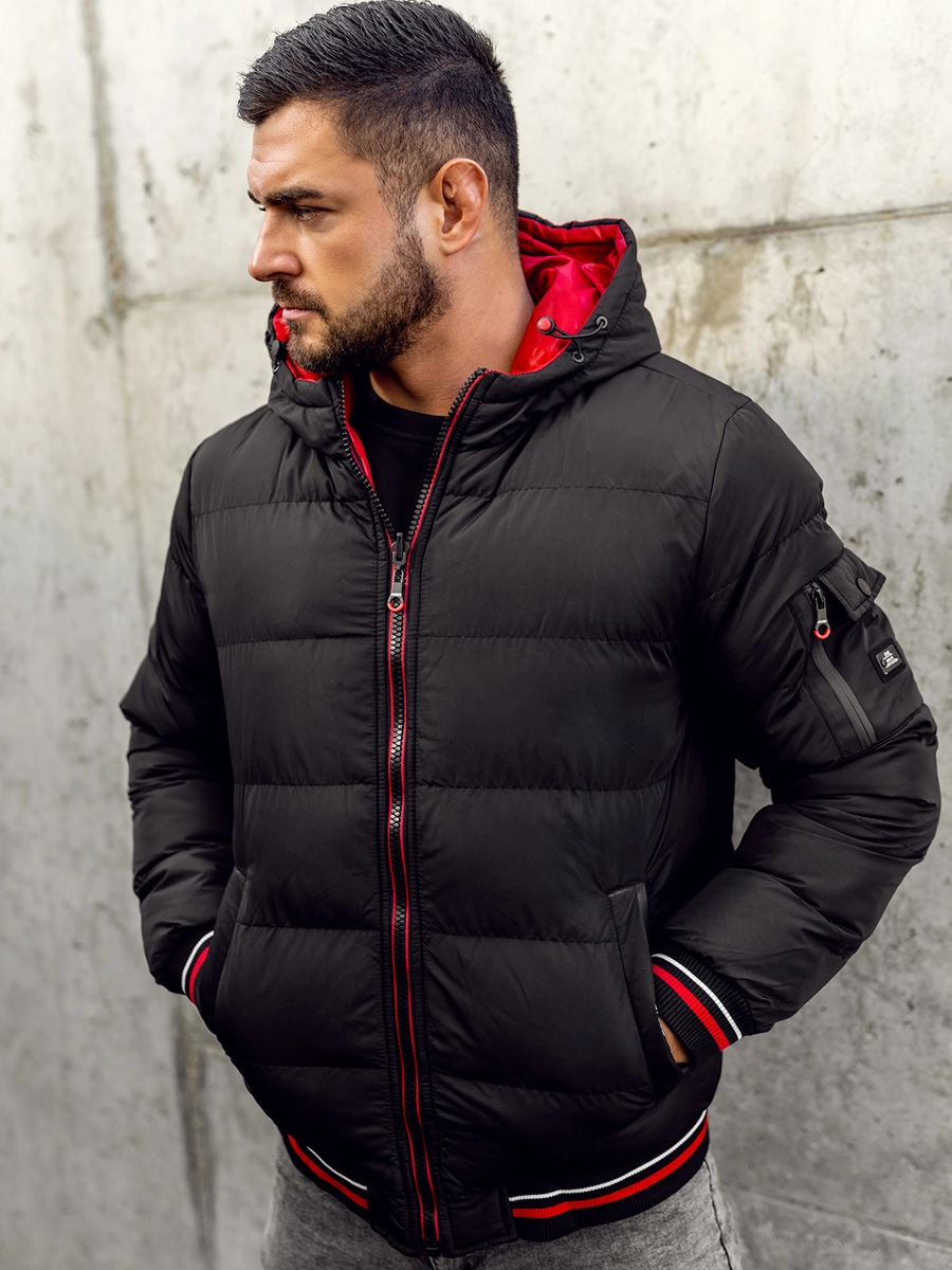 Svart reversibel quiltad herr vinterjacka 7410 från Bolf kollektionen - perfekt för kalla dagar. Avtagbar, tvålagers och justerbar huva skyddar dig från vind och kyla. Jackan knäpps med dragkedja och har en ståkrage. Produkten har fyra fickor, två utvändiga fästa med tryckknappar och två invändiga, så att du säkert kan dölja din telefon, plånbok eller dokument. En dekorativ applikation och en imitation av en ficka på ärmen bidrar till dess karaktär. Nederdelen av jackan och ärmarna är avslutade med en passform, tack vare vilken den passar perfekt till kroppen. Material av högsta kvalitet ger en känsla av komfort, bekvämlighet och värme när du bär. Älskar du en klassisk look? Kombinera jackan med en T-shirt, en tröja och jeans!