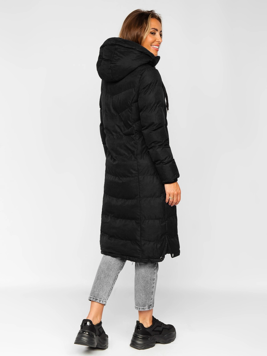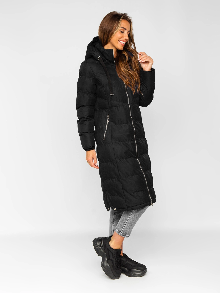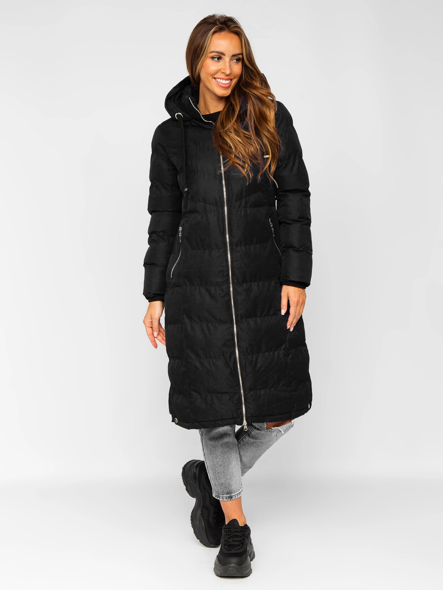 Feedback från kunder Dam Lång Quiltad Vinterjacka med huva Svart Bolf 5M736