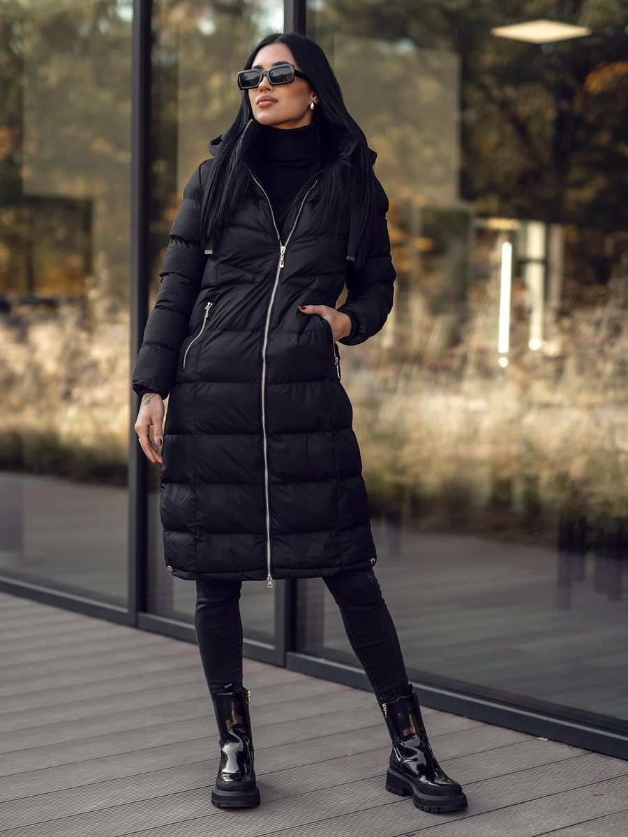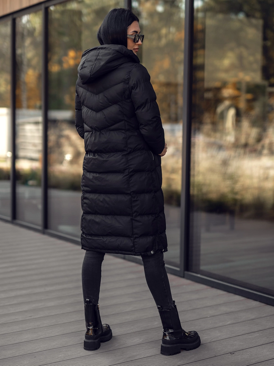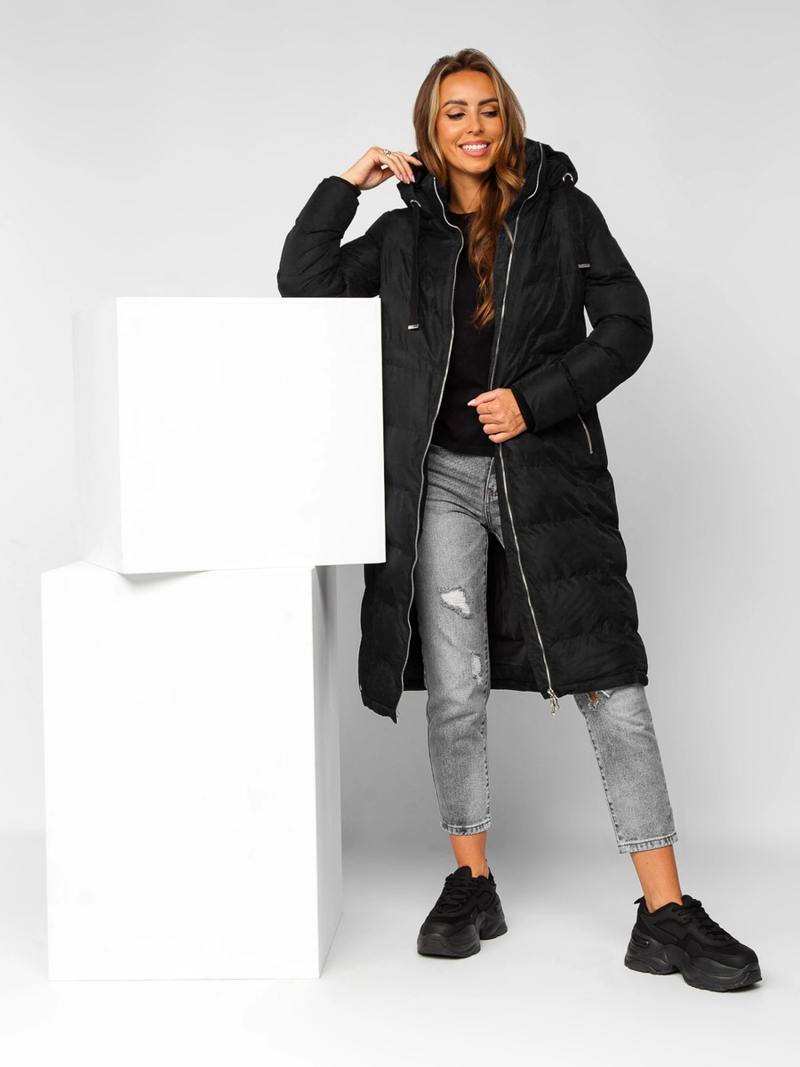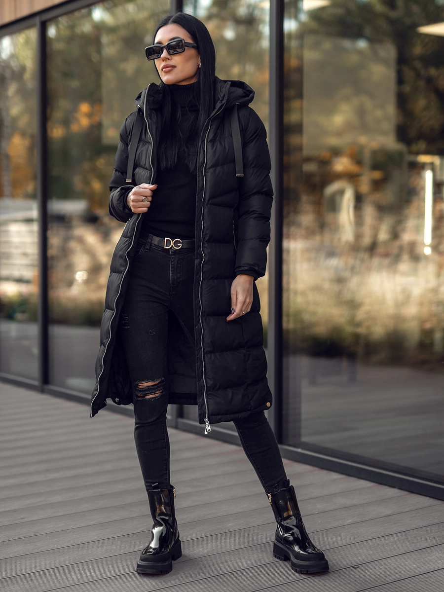 Feedback från kunder Dam Lång Quiltad Vinterjacka med huva Svart Bolf 5M736