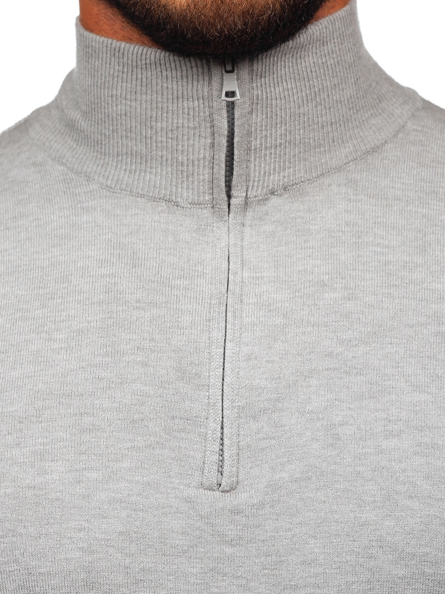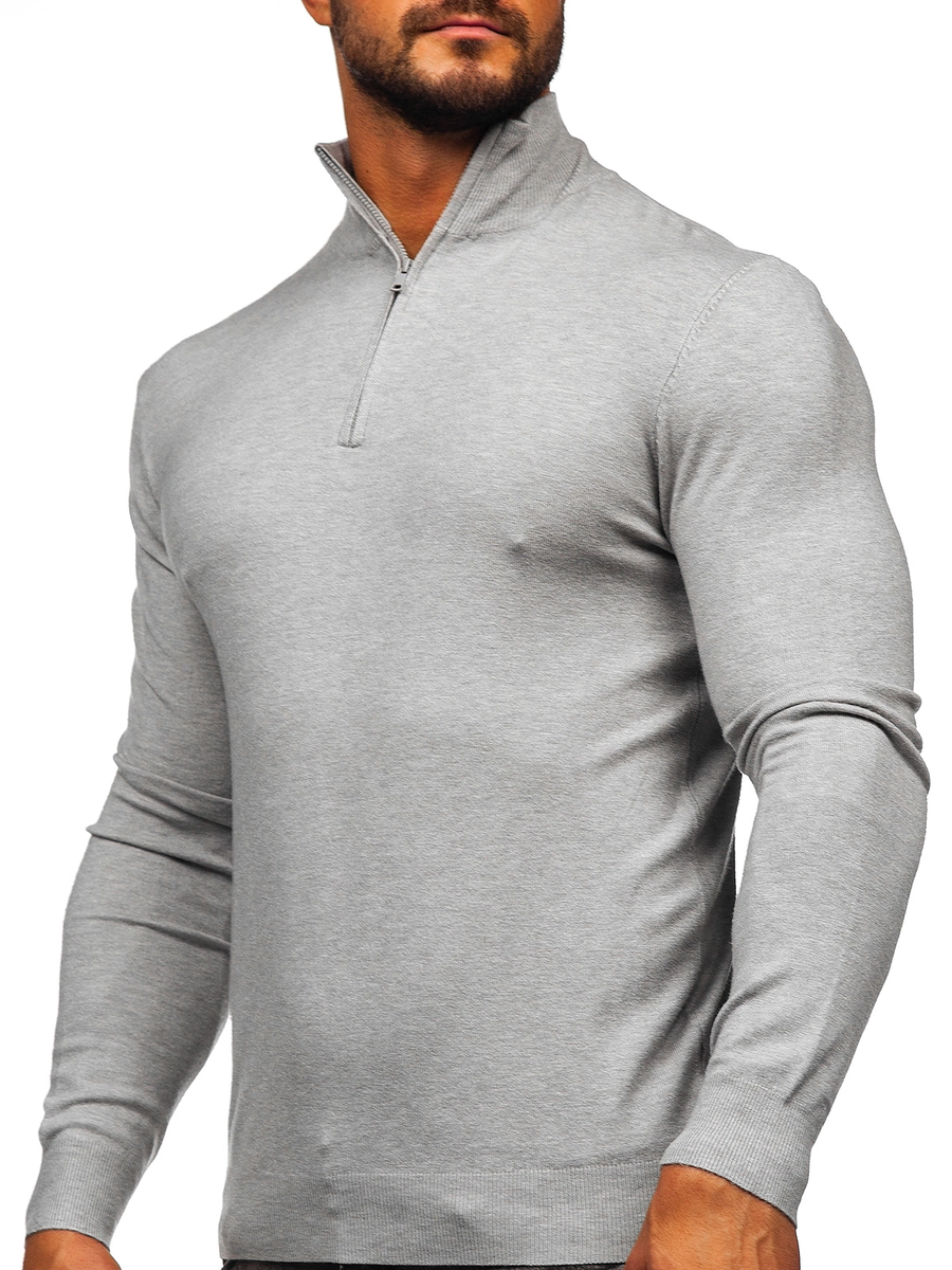 Original grå herrtröja med ståkrage MM6007 från Bolfs kollektion. Produkten har en ståkrage med dragkedja, som avslutas med en passform. Ribbstickningen är också avslutad i botten och ärmarna, tack vare vilken tröjan passar perfekt till varje figur. Tack vare dess passform får alla ett väldigt fördelaktigt utseende i den. Den är tillverkad av ett väldigt fint och mjukt material som anpassar sig fint efter kroppen. Du kommer att se bra ut i den, oavsett tillfälle. Klassisk tröja passar bra till jeans och en läderjacka.