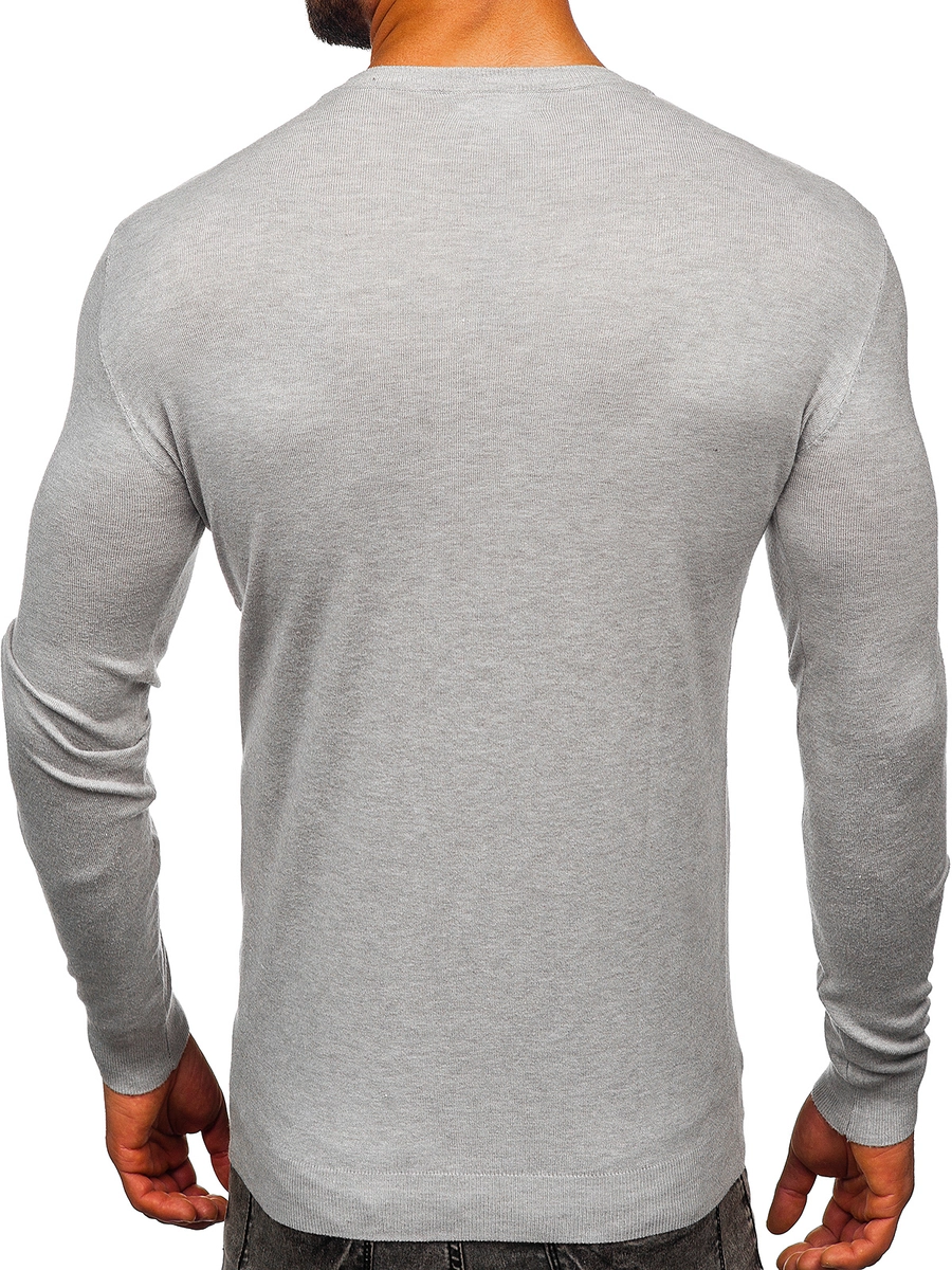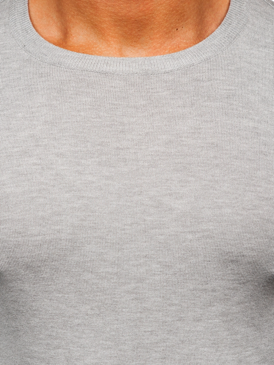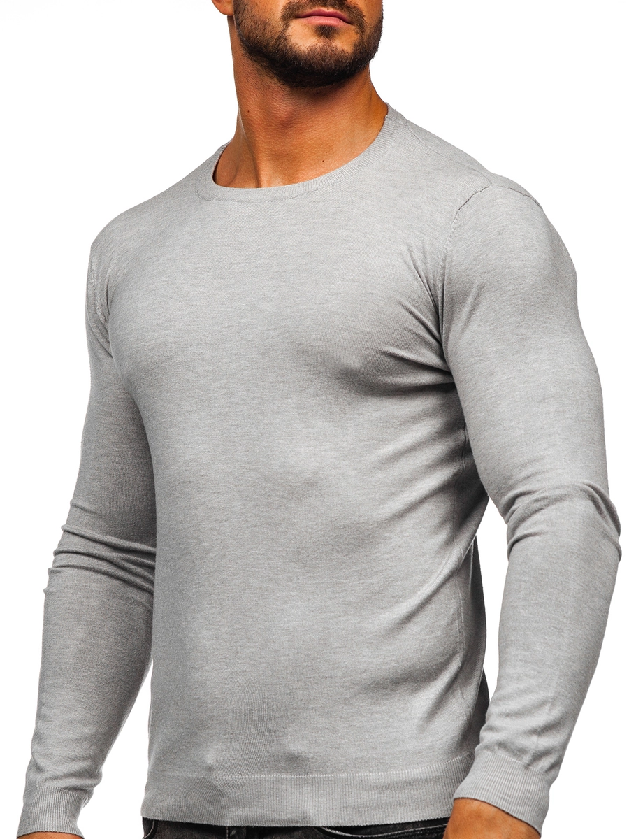 Klassisk grå herrtröja MMB602 från Bolfs kollektion. Den finns i flera olika färgvarianter. Nederdelen, halsen och ärmarna är avslutade med en passform tack vare vilken den passar kroppen perfekt. Tröjan passar utmärkt lite kallare dagar. Du kan ha den på promenaden, shoppingturen eller till arbetet. Produktens tidlösa stil gör att du kan skapa många fashionabla stilar med den. Med en ledig tröja kan du skapa outfits för alla tillfällen. Ta på dig din T-shirt, jeans, en kappa och njut av den megafashionabla looken!