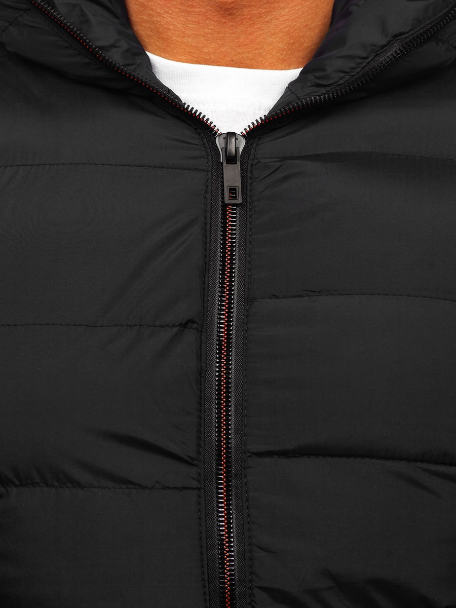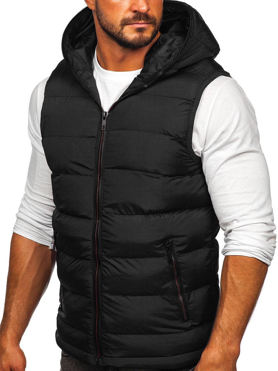 Snygg svart varm quiltad herrväst med huva 7M805 från Bolfs kollektion. Moderiktig, quiltad väst har en avtagbar huva i dubbla lager. Stängs med en dragkedja. Den har två ytterfickor med dragkedjor och en innerficka, där du säkert kan gömma de mest nödvändiga topparna. Ärmhålen är avslutade med en elastisk kant. Västen finns i flera olika färger. Du kommer att använda den varje dag under en tur till stan, träffa vänner eller kvällsträning. Kombinera med en tröja och jeans för en snygg outfit.