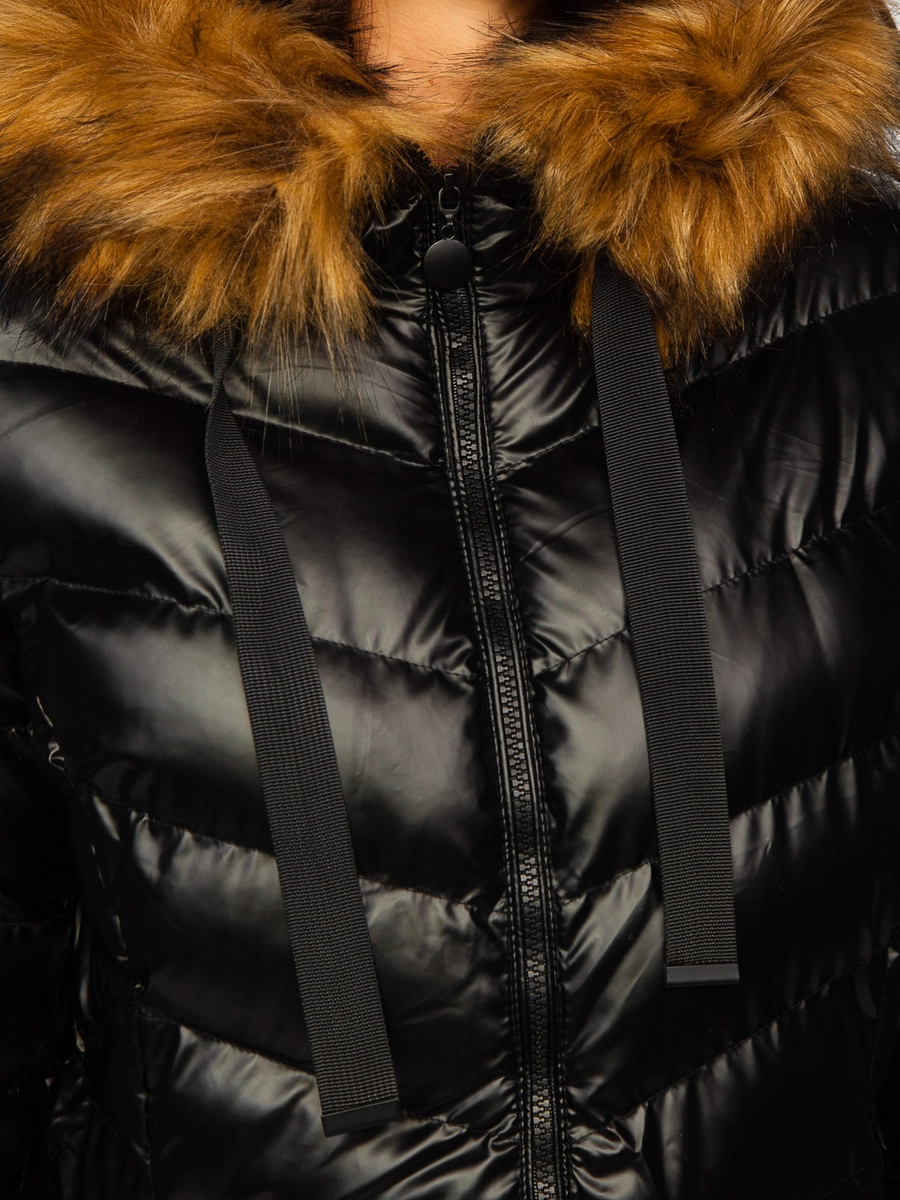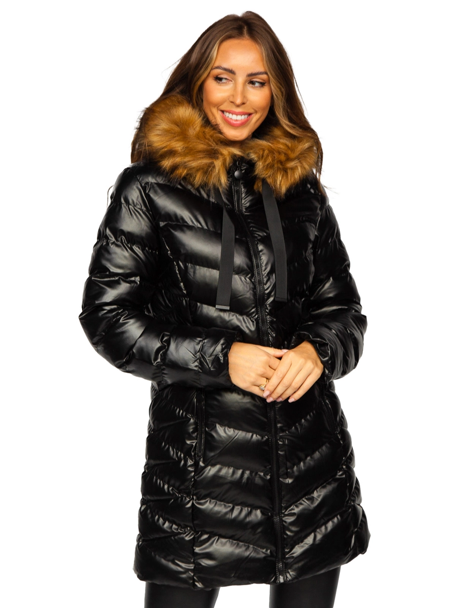 Feedback från kunder Dam Lång Quiltad Vinterjacka med huva Svart Bolf 5M778