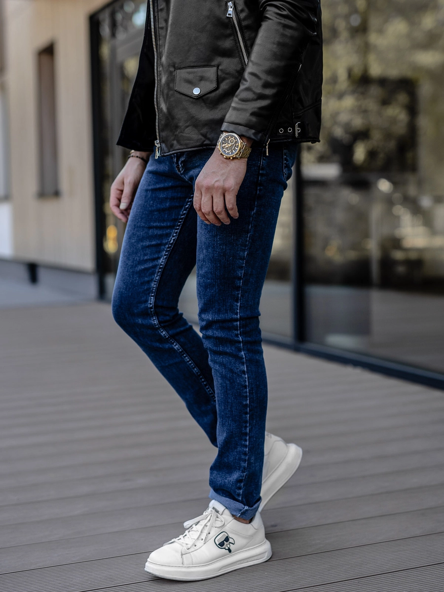 Klassiska marinblå slim fit herrjeans DP52 från Bolfs kollektion. De har dragkedja och en knapp. På denna modell finns två fickor fram och två bak. Det finns en dekorativ ficka framtill. De är tillverkade av material av hög kvalitet, vilket gör dem extremt mjuka och behagliga. Slim fit jeans är bekväma och passar perfekt till varje figur. Det är en av de mest populära byxstilarna. De är bekväma, praktiska och ser alltid bra ut! Passar bäst i kombination med en sweatshirt, en T-shirt eller en tröja.