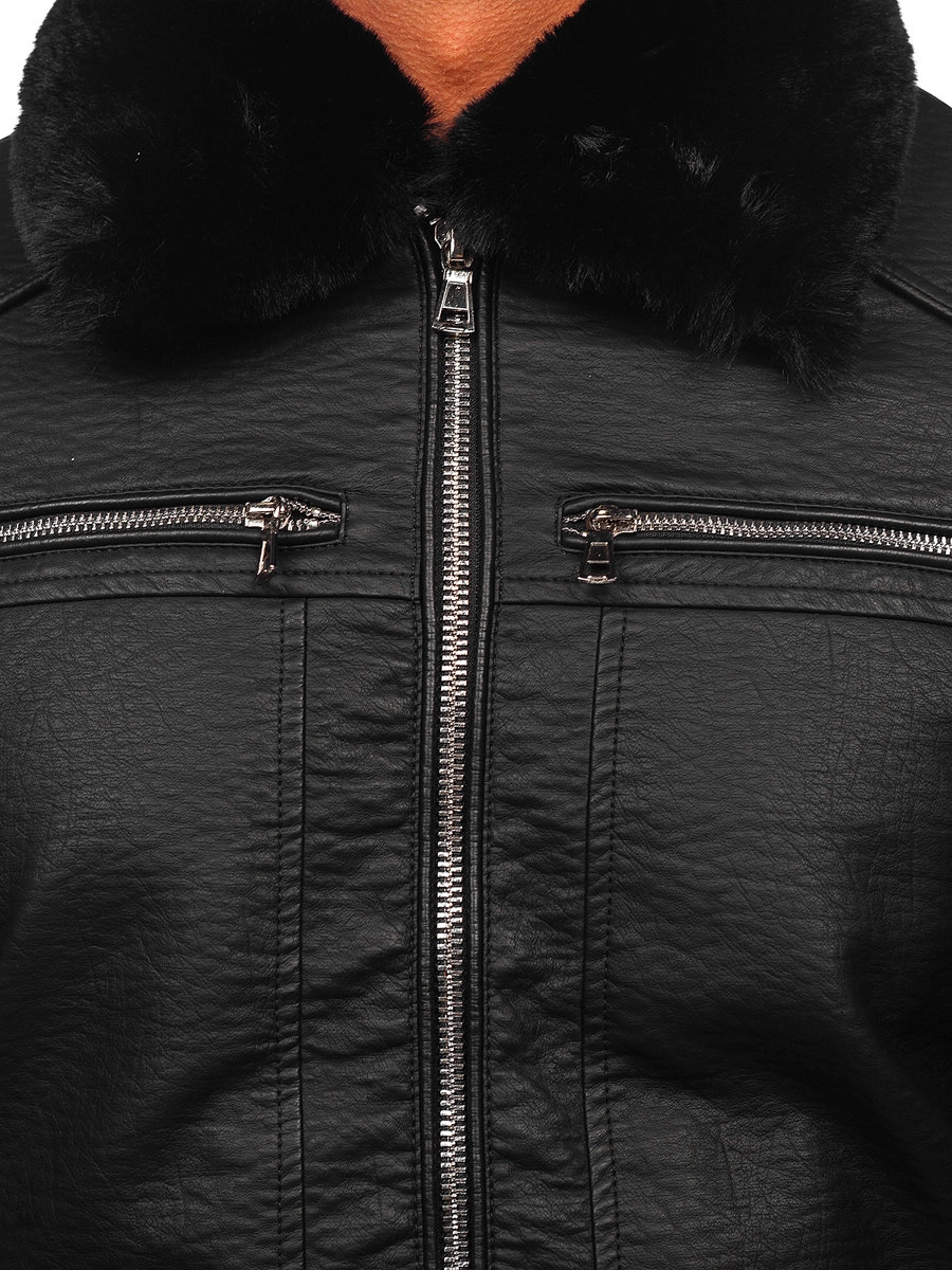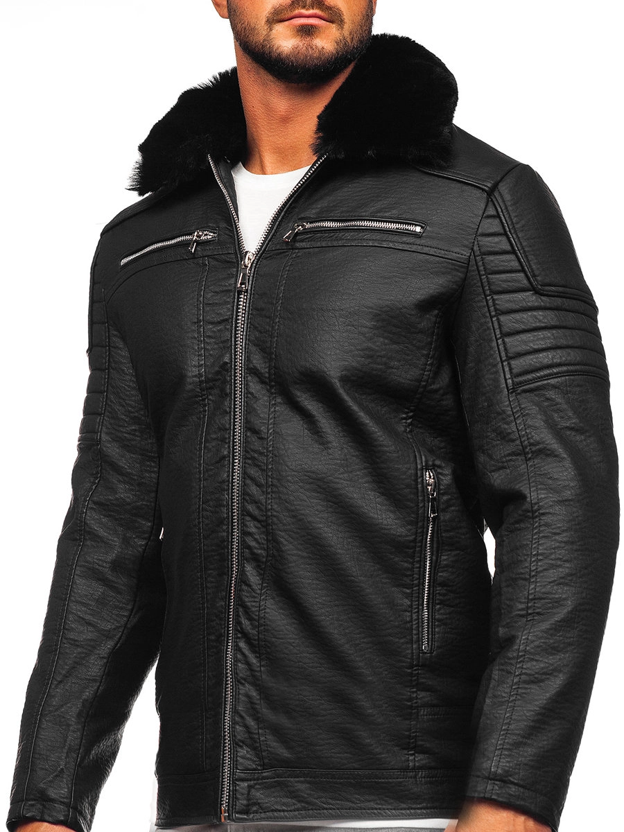 Klassisk svart herr skinnjacka med en päls 11Z8013 från Bolf kollektionen. Tillverkad av ekologiskt läder, knäppt med dragkedja. Bikerjackan har moderiktiga materialkombinationer som skiljer den från andra förslag! Dekorativa dragkedjor på ärmarna och avtagbar päls ger den ett unikt utseende. Jackan har praktiska ytterfickor med dragkedjor och en innerficka. Den avslappnade stilen på jackan låter dig skapa många intressanta stilar med dess hjälp. Satsar du på klassikerna? Kombinera en bikerjacka med jeans och en T-shirt!