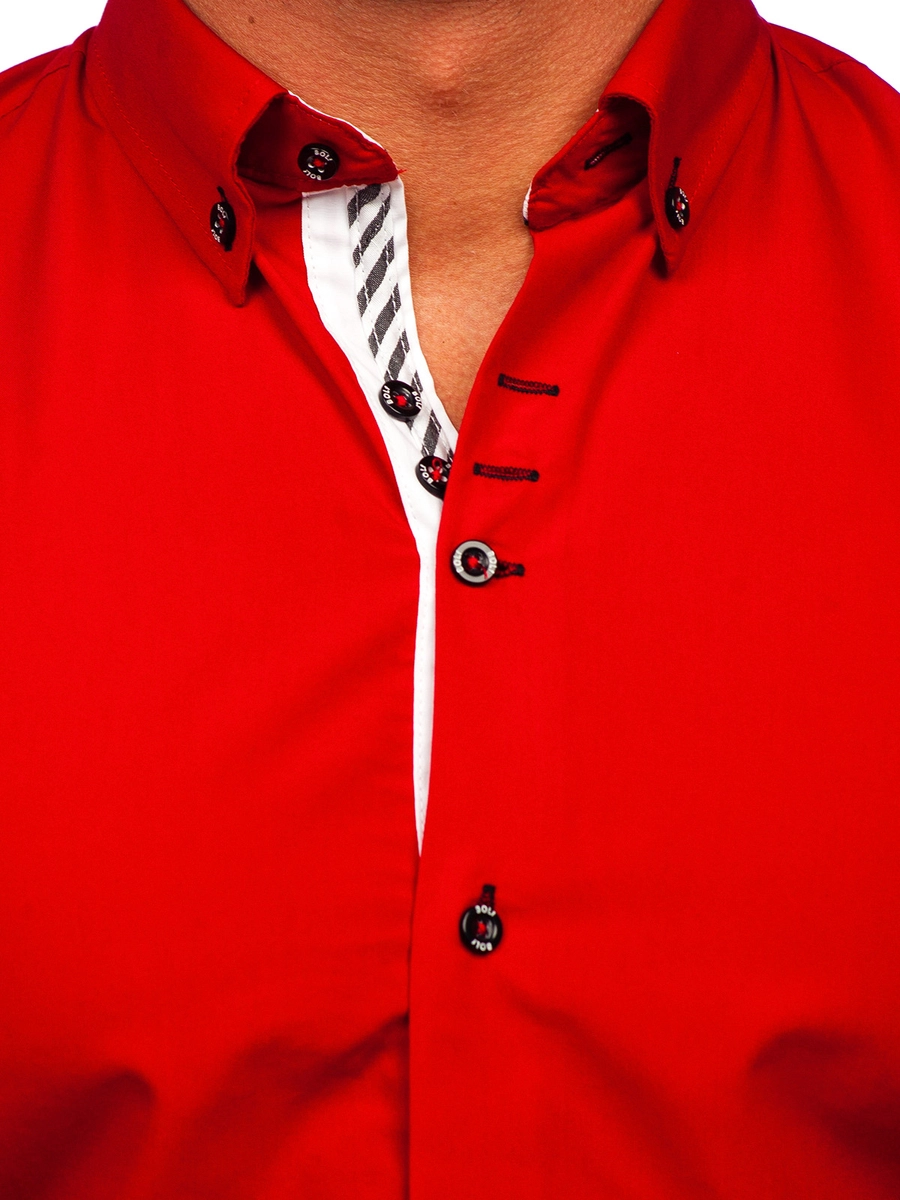 Elegant röd herrskjorta från Bolfs kollektion. Den är lätt och har skön passform. Modellen är slim fit och passar bra ihop med jeans. Passar bra med ett par chinos och en kavaj.