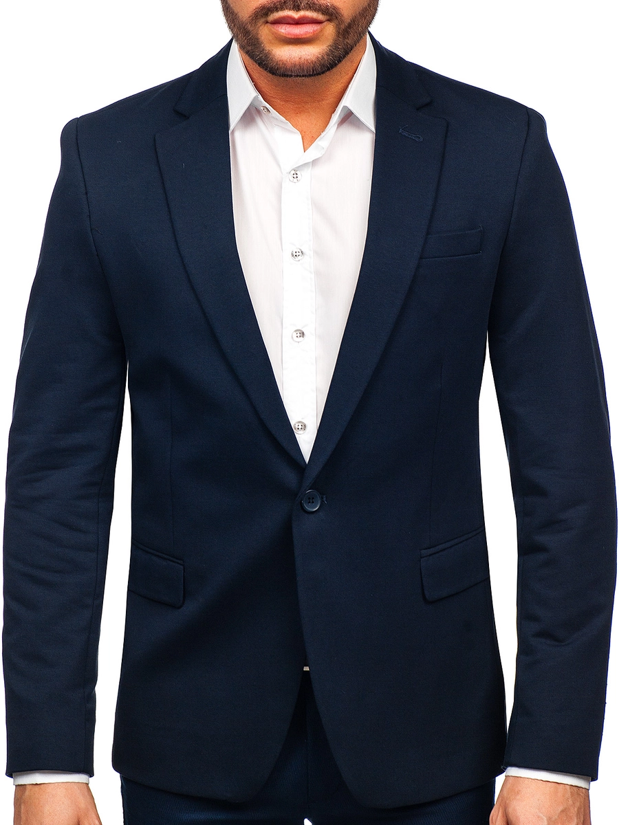 Enastående marinblå blazer för män 1652A från Bolf-kollektionen. Det är en klassisk enkelknäppt kavaj som knäpps med en knapp. Den smala passformen, älskad av våra kunder, anpassar sig till figuren. Den har en bröstficka och en enkel ventil baktill. Dess två sidfickor med lock och två innerfickor gör den mer praktisk. Dekorativa knappar på ärmarna ger den karaktär. Produkten finns i tre versioner. En ledig kavaj är ett måste! Komponera din eleganta look med chinos och en skjorta. För en mer avslappnad outfit, välj jeans och en kappa.