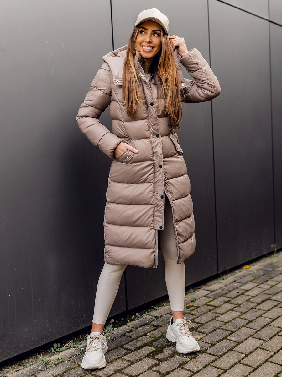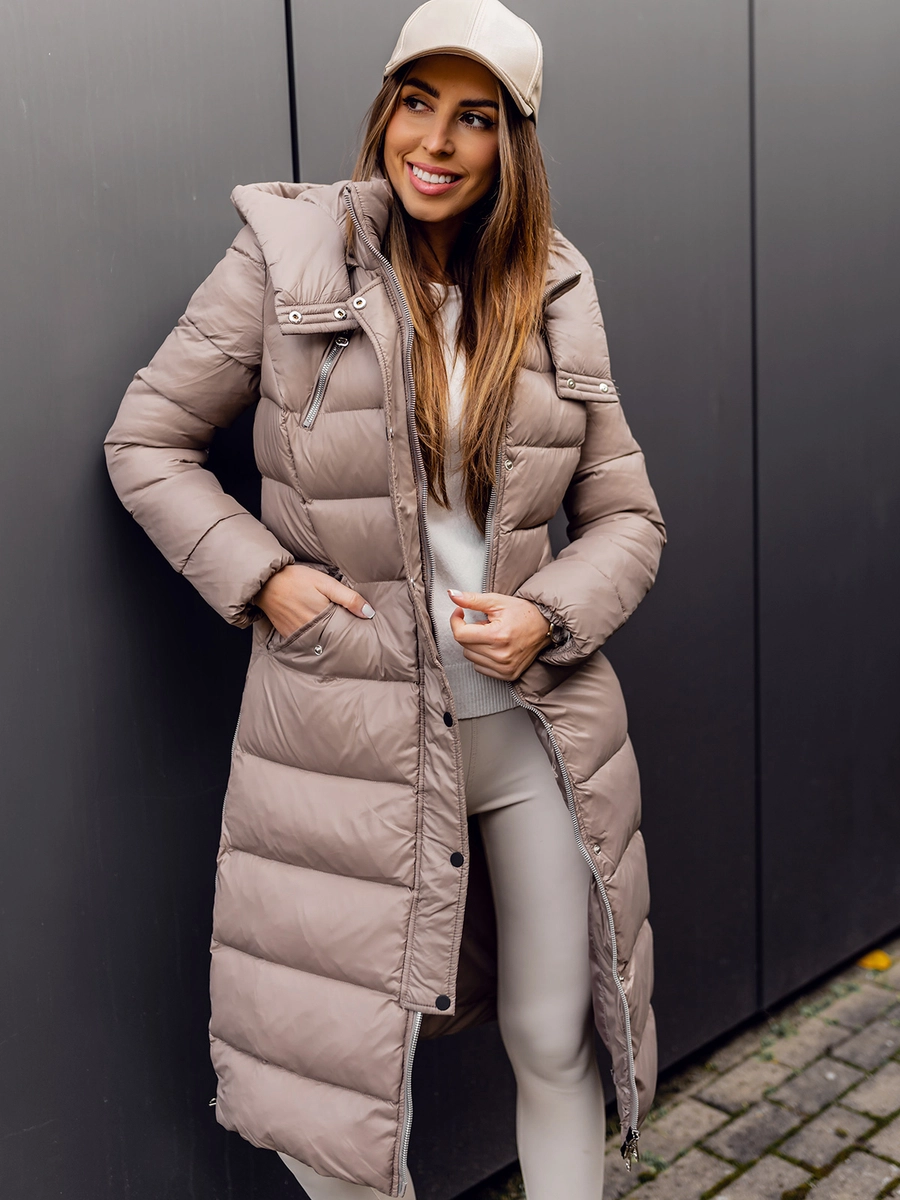 Feedback från kunder Dam Lång Quiltad Vinterjacka med huva Brun Bolf M689
