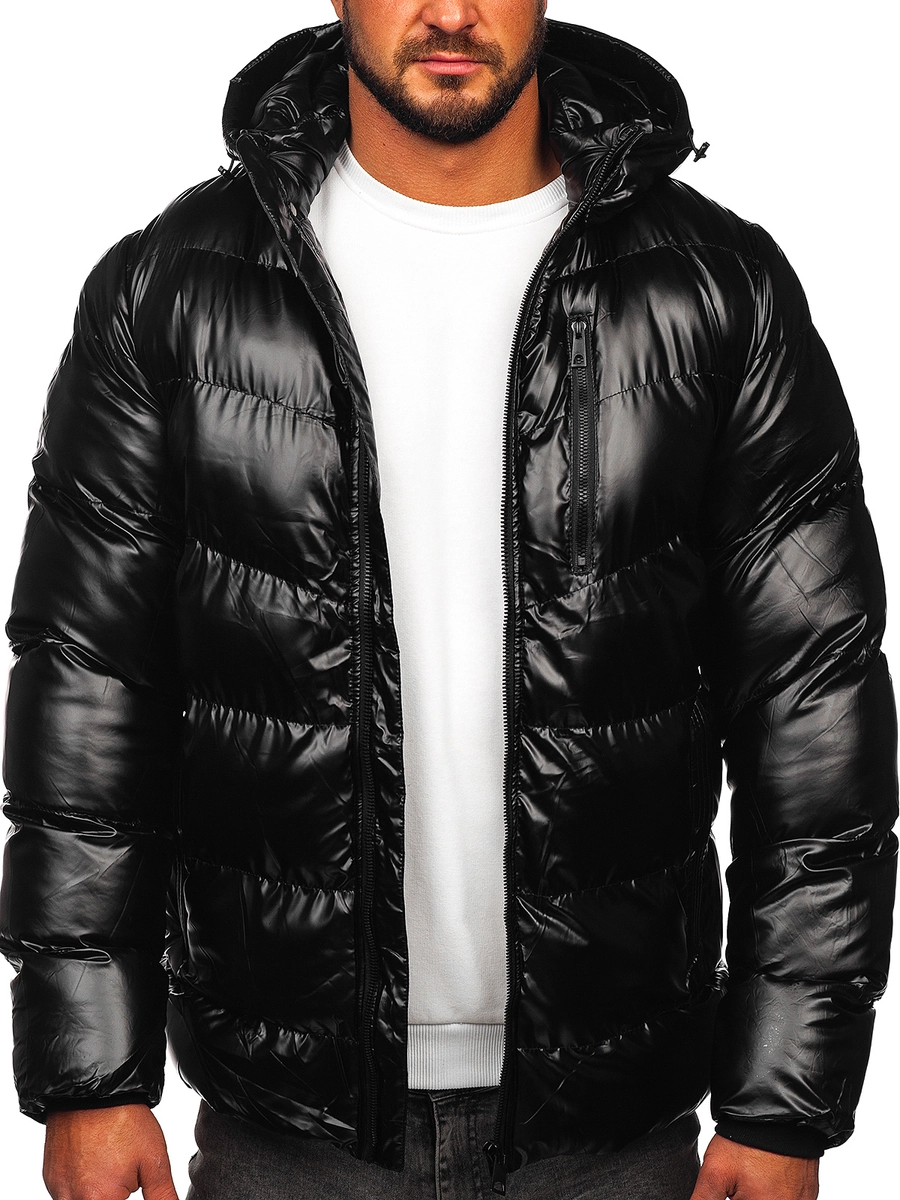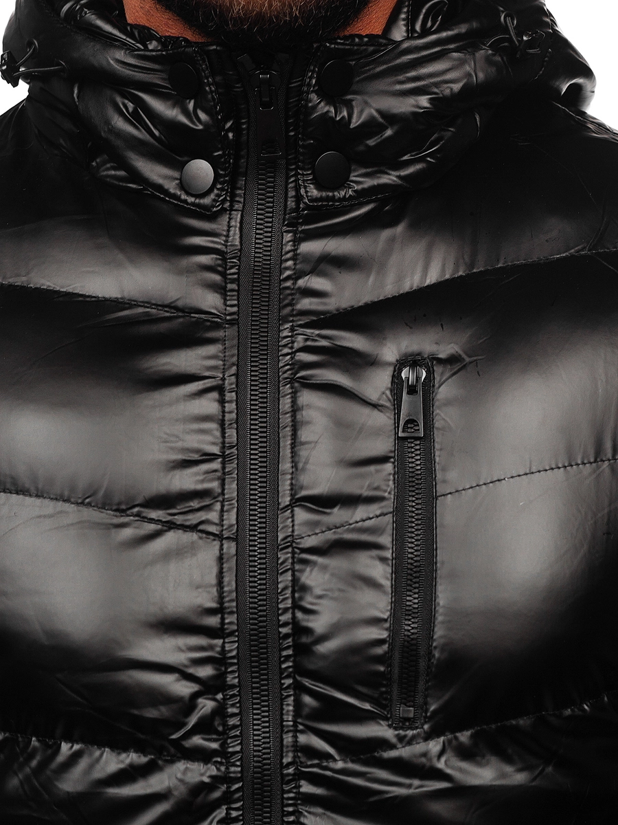 Snygg svart quiltad herrvinterjacka 27M8105 från Bolfs kollektion. Den knäpps med dragkedja och har en avtagbar, justerbar huva och en ståkrage. Den har ytterfickor, dragkedja och en innerficka, där du säkert kan gömma det mest nödvändiga. Jackan anpassar sig perfekt till figuren tack vare ärmarna som är avslutade med en kant på insidan. Dess karaktär tillförs av ett dekorativt tryck längs dragkedjan och imiterade fickor som fästs med en tryckknapp. Den quiltade jackan skapar en perfekt look med jeans och en tröja!
