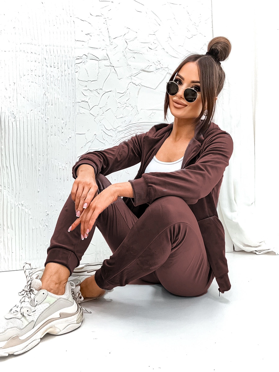 Fantastisk träningsoverall i 2 delar i velour 829 för kvinnor från Bolf-kollektionen. Den är extremt behaglig att ta på och bekväm att bära. Perfekt för vardagsbruk, gå ut med vänner eller jogga. Setet består av en sweatshirt med dragkedja och elastiska byxor. Träningsoverallen framhäver formerna väl, och benen avslutade med passform gör benet smalare. Tröjan och byxorna kan bäras tillsammans eller separat, vilket ger oändliga stylingmöjligheter. Genom att kombinera en sweatshirt med jeans kan du skapa en moderiktig, avslappnad outfit. Dessutom har byxorna två fickor där du enkelt får plats med en telefon eller småsaker. Tillgänglig i flera olika färger.