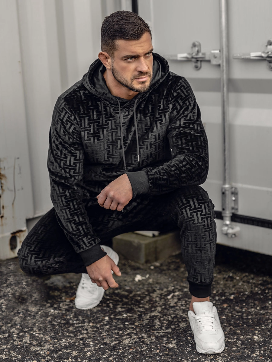 Feedback från kunder Herr Velour Träningsoverall med huva Svart Bolf 3A81-A