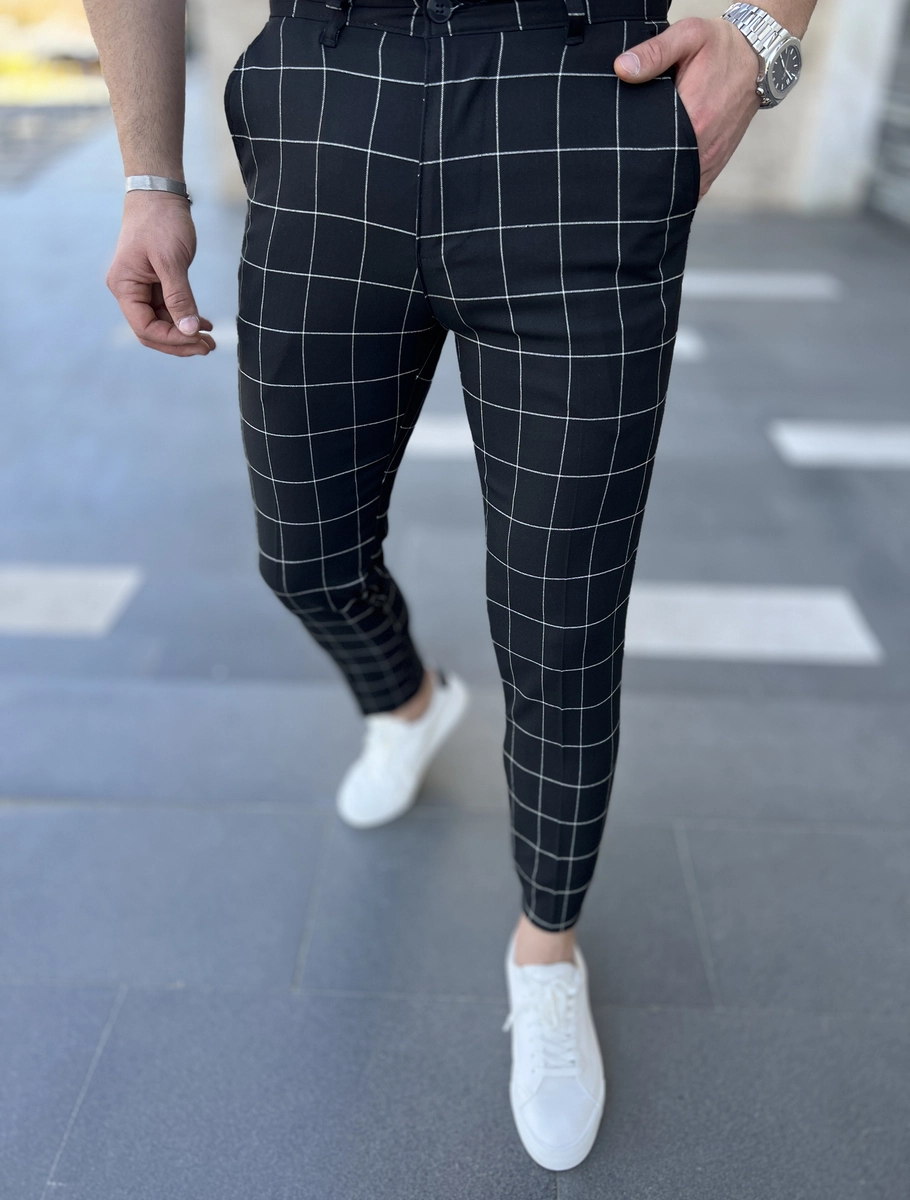 Feedback från kunder Herr Eleganta rutiga byxor Svart Bolf 0040