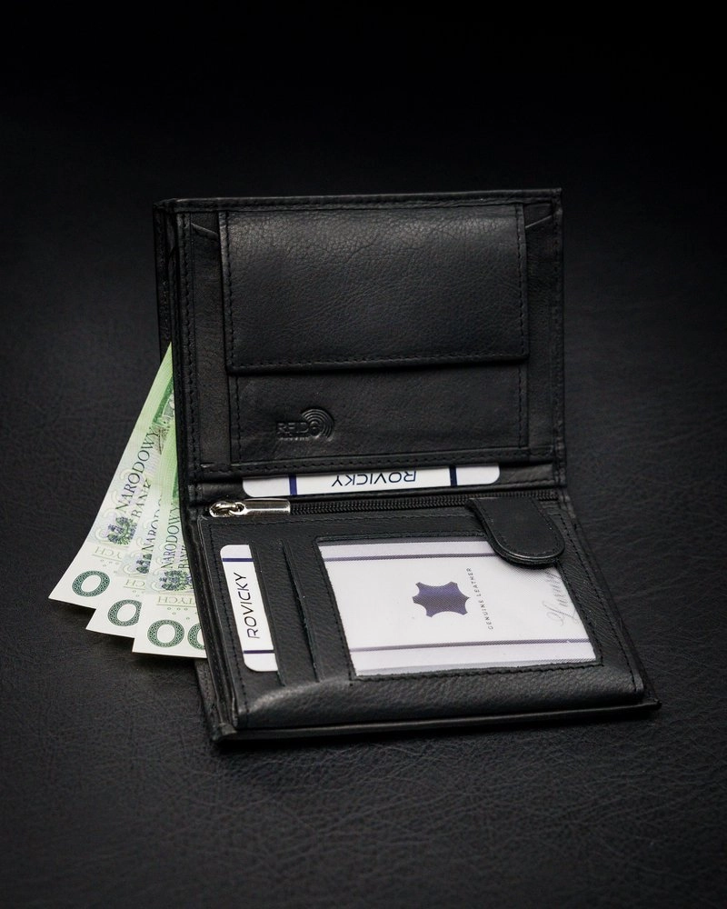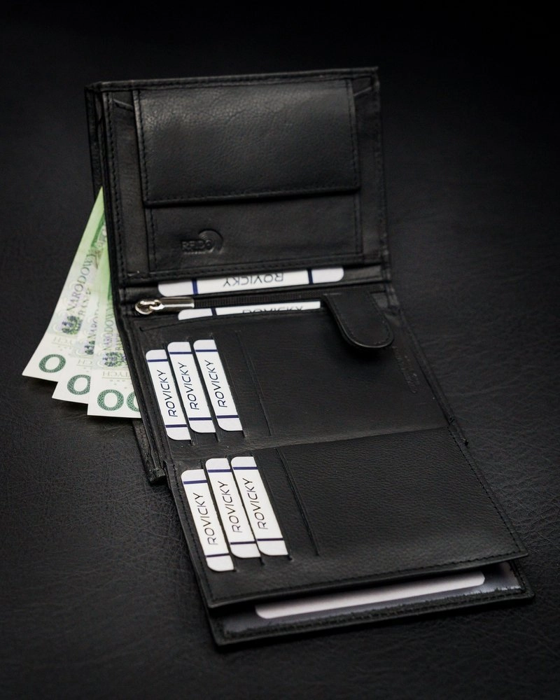 - 1 blixtlåsfack i den centrala delen av plånboken.
