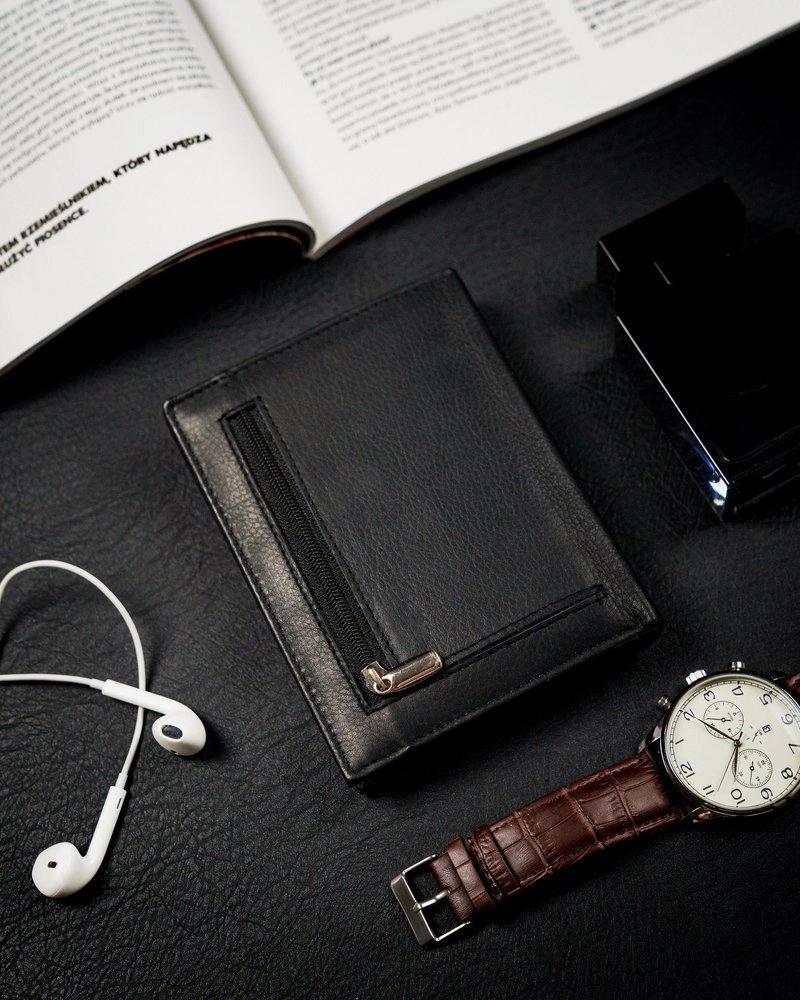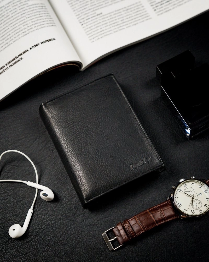 - Tidlös design | Läderklassiker! Svart vertikal plånbok för män i en moderiktig färg