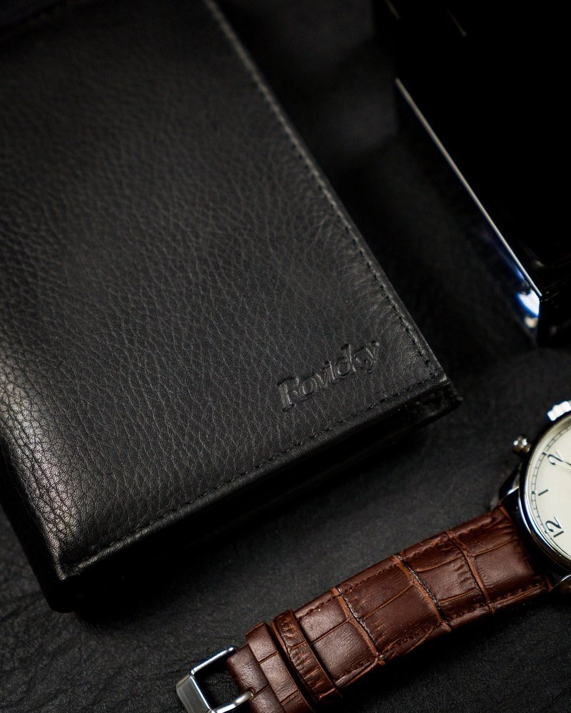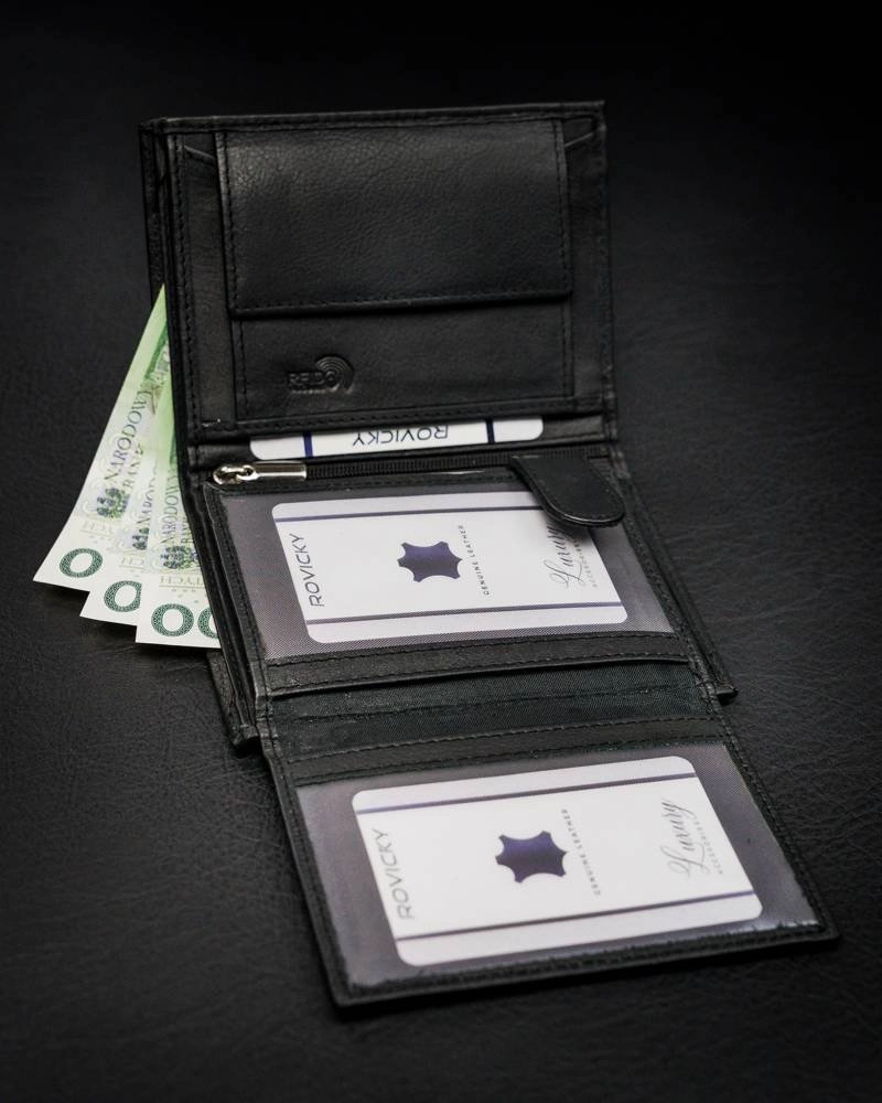 Läderplånbok för män med tryckknapp och RFID-skydd