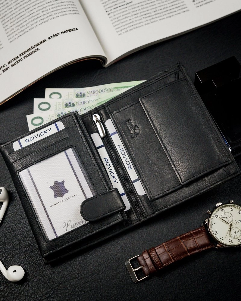 - Du kan enkelt stoppa den i fickan | Denna modell är designad extremt intuitivt och funktionellt. Trots sin ringa storlek får du plats med tillräckligt med kort, dokument och kontanter i den