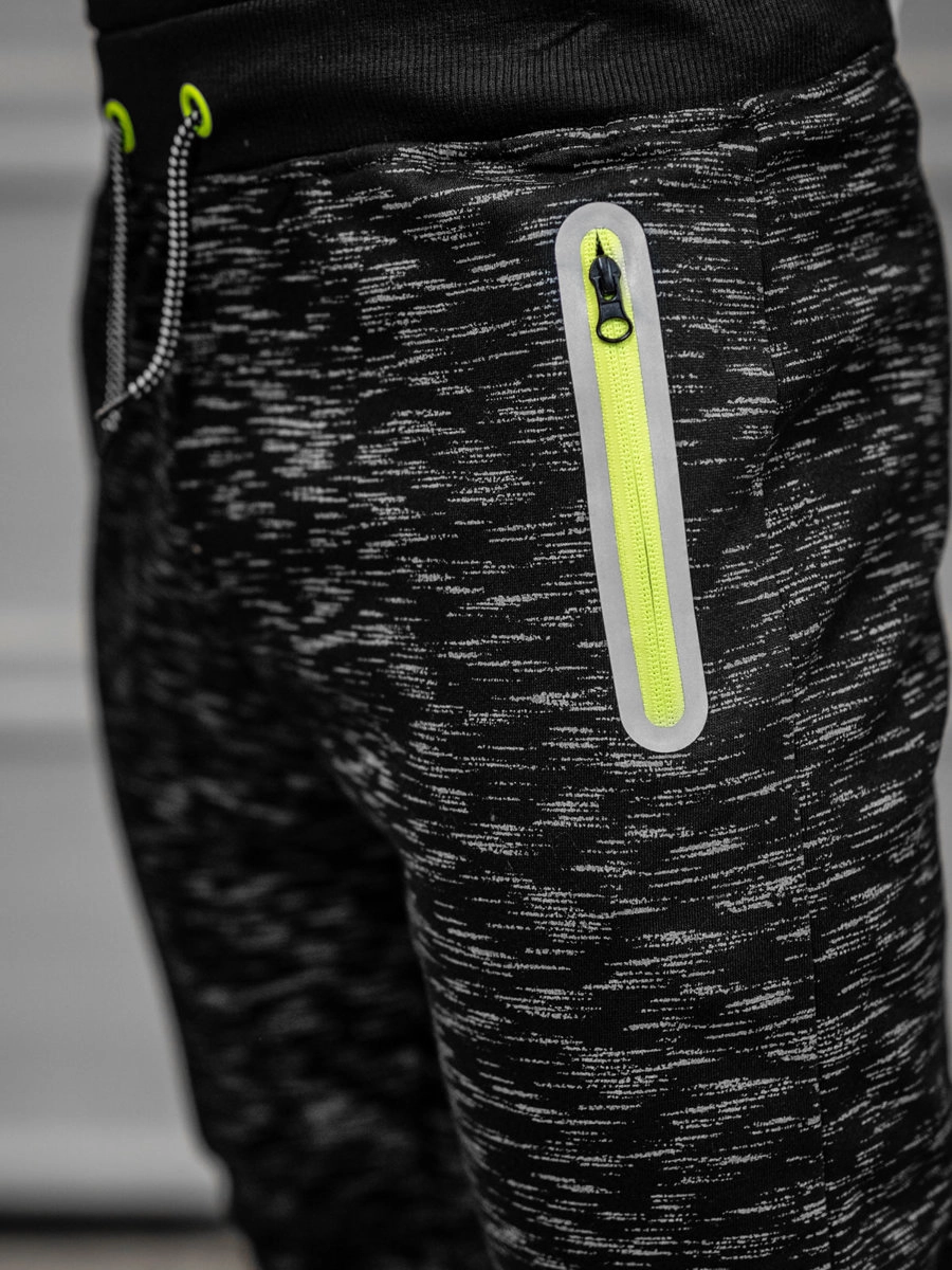 Original svarta herrmönstrade träningsbyxor från Bolf-kollektionen. Detta par är välsittande, har 2 fickor med dragkedja och praktisk midjereglering. Passar till flertalet olika stilar och tillfällen. Bär den med en T-shirt, en långärmad topp eller en sweatshirt.