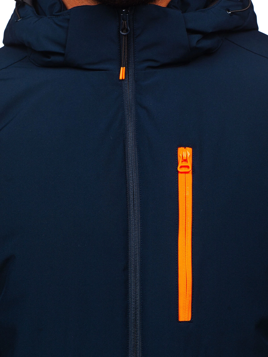 Klassisk marinblå herr sportig vinterjacka HH011 från Bolf kollektionen. En vinterjacka med huva passar alla smaker. Den stängs med dragkedja. Huvan är avtagbar och har 2D reglering. Den höga kragen med dragkedja skyddar utmärkt mot kylan. En praktisk detalj med jackan är fickorna: två sidofickor med dragkedja, bröstfickan har också dragkedja och därtill två invändiga fickor, en med kardborre. Ärmarna är justerbara med kardborre och invändigt finns en elastisk mudd med tumhål. Produkten är väldigt användbar, den passar till träning, promenader, turen in till stan eller på vandingen i bergen. Den är tillverkad av 94% polyester och 6% elastan. Den passar jättebra med jeans eller sweatpants.