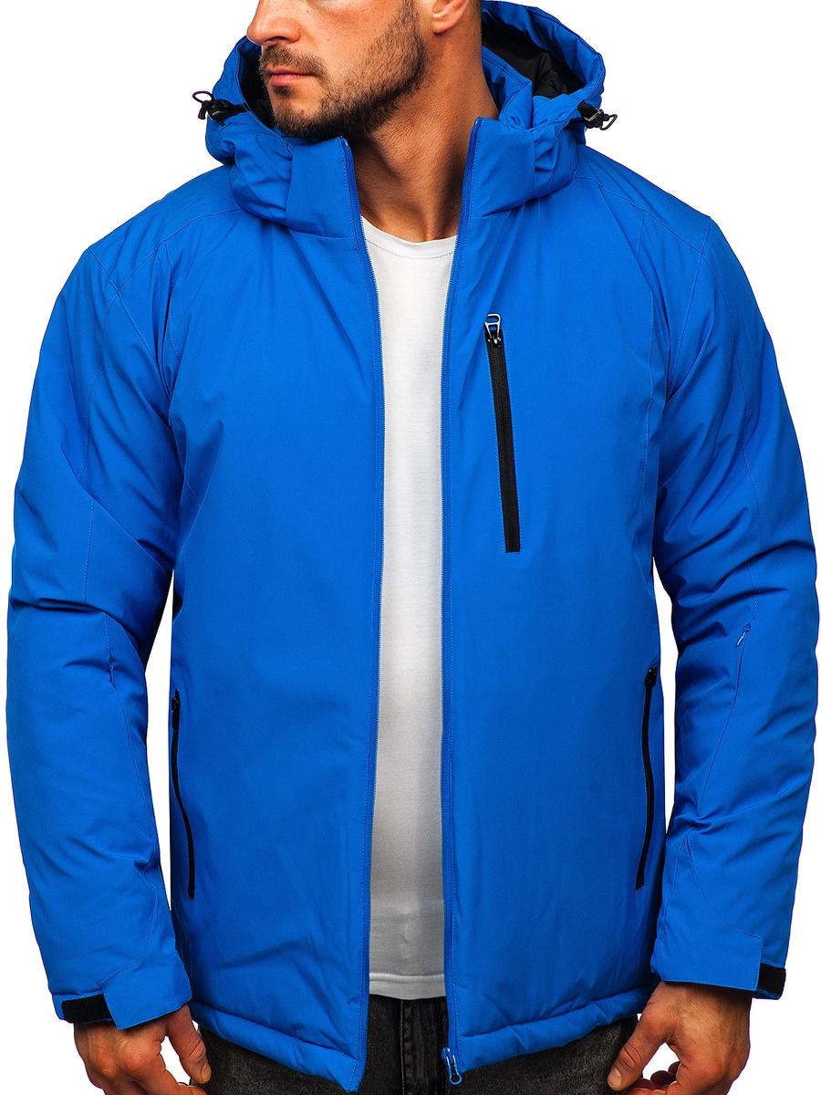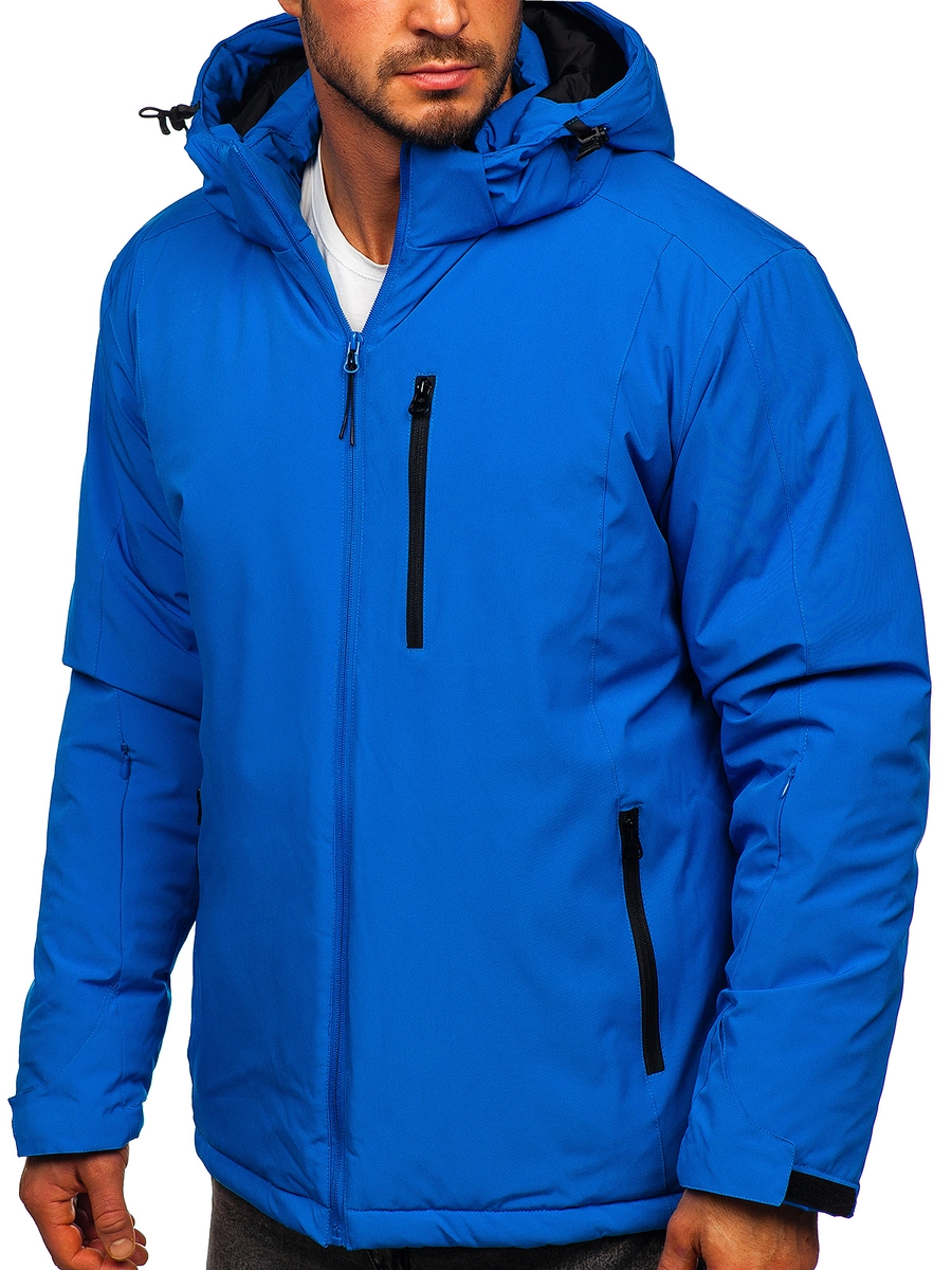 Klassisk blå herr sportig vinterjacka HH011 från Bolf kollektionen. En vinterjacka med huva passar alla smaker. Den stängs med dragkedja. Huvan är avtagbar och har 2D reglering. Den höga kragen med dragkedja skyddar utmärkt mot kylan. En praktisk detalj med jackan är fickorna: två sidofickor med dragkedja, bröstfickan har också dragkedja och därtill två invändiga fickor, en med kardborre. Ärmarna är justerbara med kardborre och invändigt finns en elastisk mudd med tumhål. Produkten är väldigt användbar, den passar till träning, promenader, turen in till stan eller på vandingen i bergen. Den är tillverkad av 94% polyester och 6% elastan. Den passar jättebra med jeans eller sweatpants.