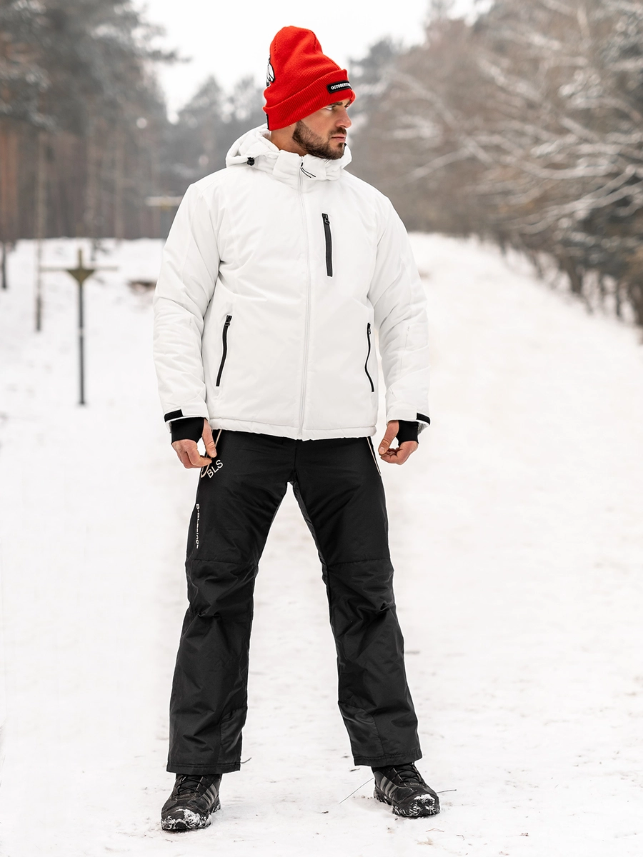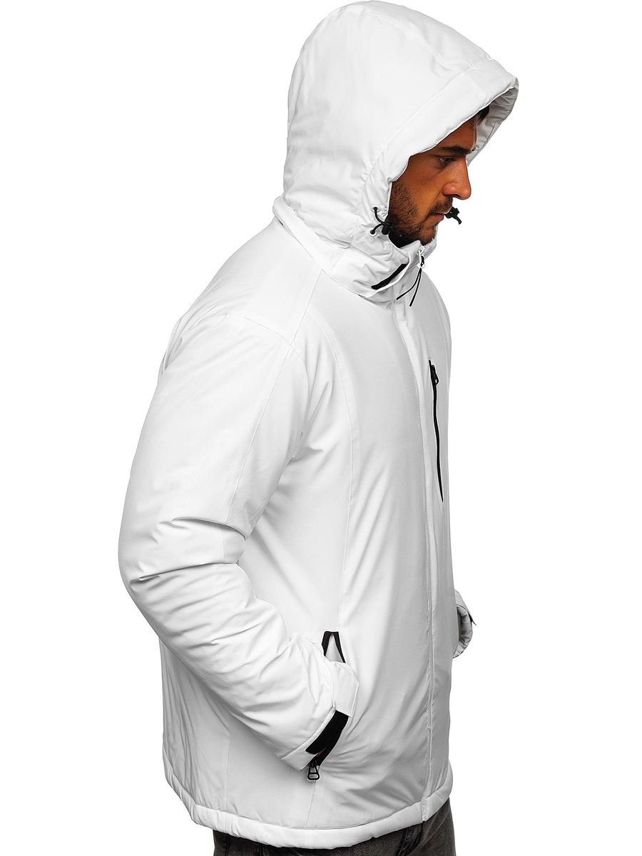 Klassisk vit herr sportig vinterjacka HH011 från Bolf kollektionen. En vinterjacka med huva passar alla smaker. Den stängs med dragkedja. Huvan är avtagbar och har 2D reglering. Den höga kragen med dragkedja skyddar utmärkt mot kylan. En praktisk detalj med jackan är fickorna: två sidofickor med dragkedja, bröstfickan har också dragkedja och därtill två invändiga fickor, en med kardborre. Ärmarna är justerbara med kardborre och invändigt finns en elastisk mudd med tumhål. Produkten är väldigt användbar, den passar till träning, promenader, turen in till stan eller på vandingen i bergen. Den är tillverkad av 94% polyester och 6% elastan. Den passar jättebra med jeans eller sweatpants.