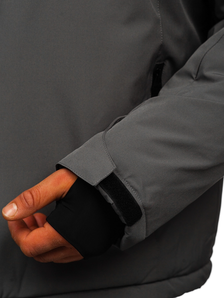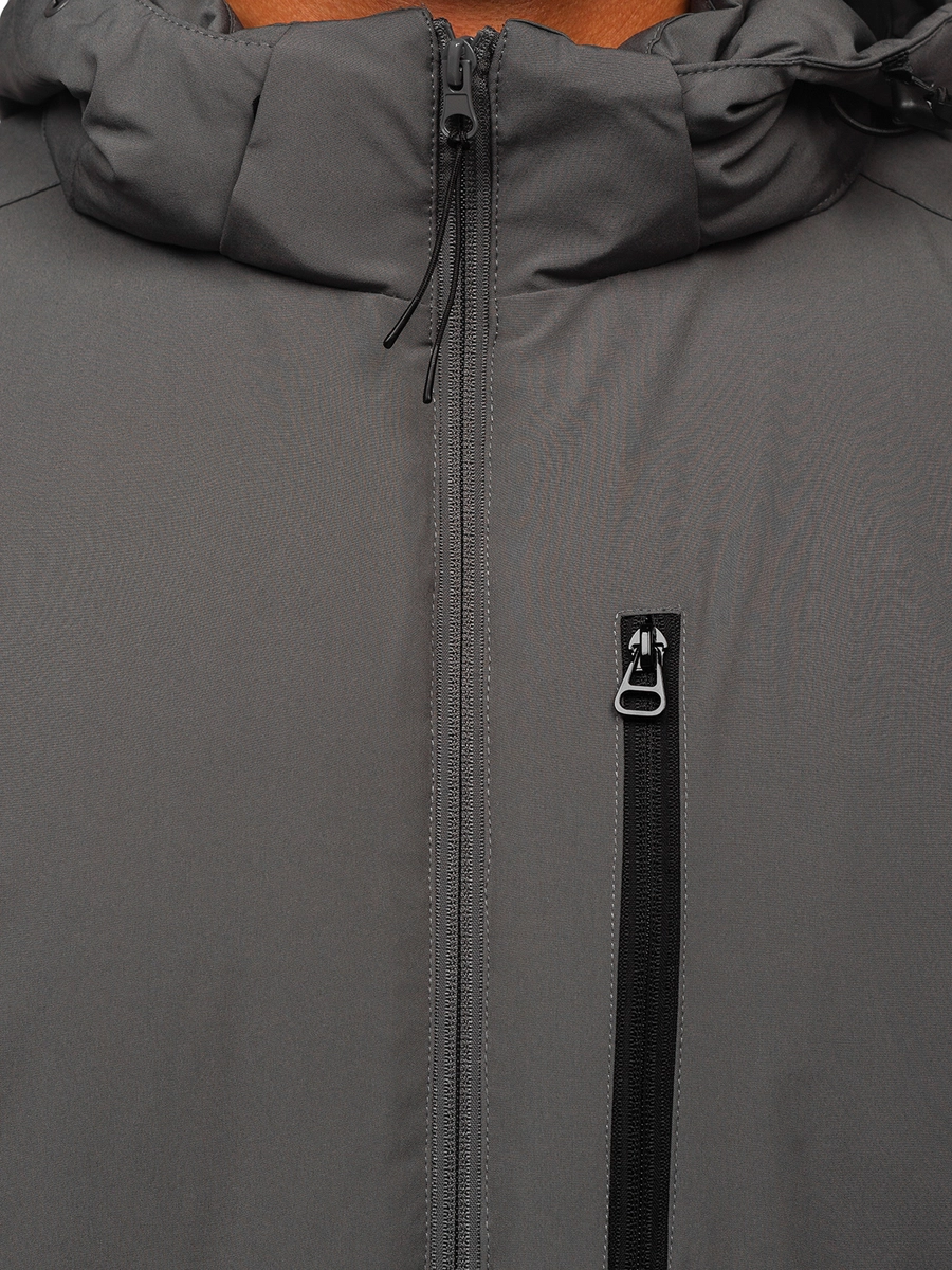 Klassisk grafitgrå herr sportig vinterjacka HH011 från Bolf kollektionen. En vinterjacka med huva passar alla smaker. Den stängs med dragkedja. Huvan är avtagbar och har 2D reglering. Den höga kragen med dragkedja skyddar utmärkt mot kylan. En praktisk detalj med jackan är fickorna: två sidofickor med dragkedja, bröstfickan har också dragkedja och därtill två invändiga fickor, en med kardborre. Ärmarna är justerbara med kardborre och invändigt finns en elastisk mudd med tumhål. Produkten är väldigt användbar, den passar till träning, promenader, turen in till stan eller på vandingen i bergen. Den är tillverkad av 94% polyester och 6% elastan. Den passar jättebra med jeans eller sweatpants.