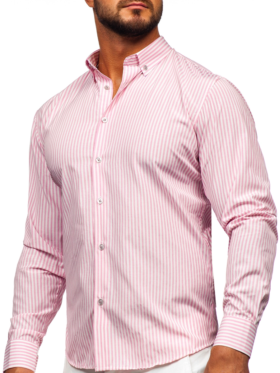 Feedback från kunder Herr Randiga Långärmad Skjorta Rosa Bolf 22731