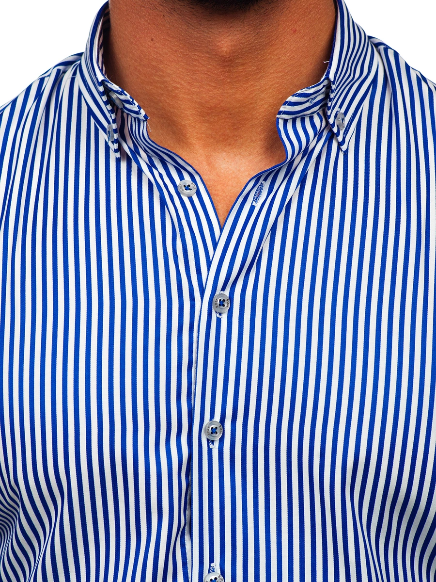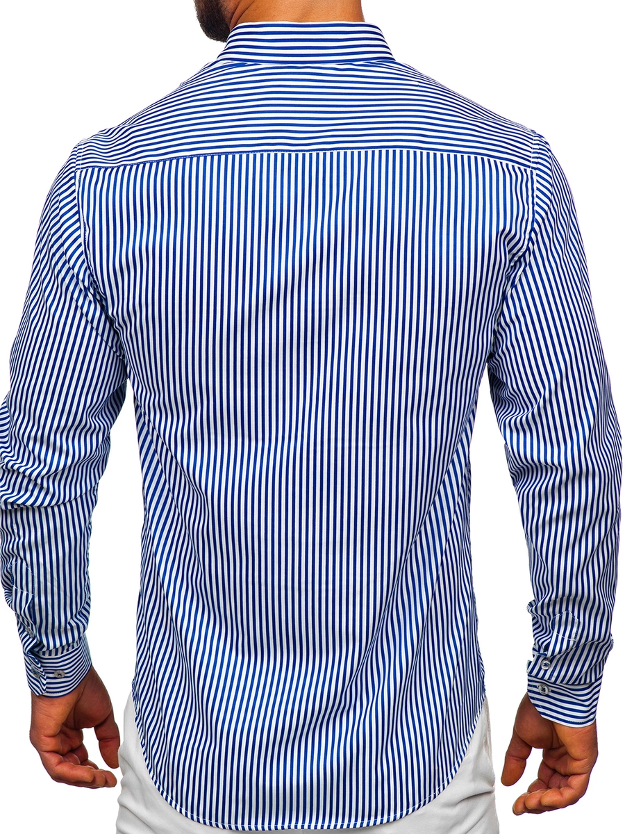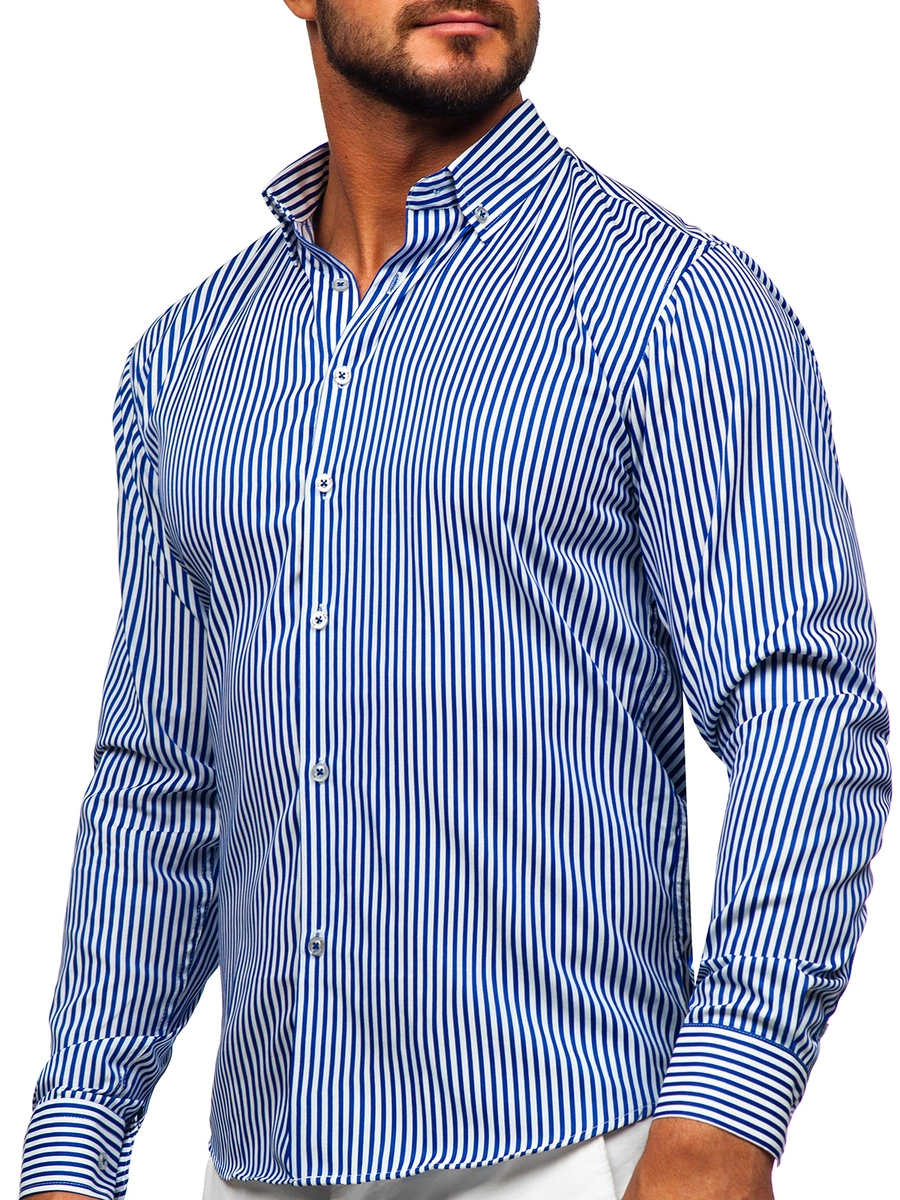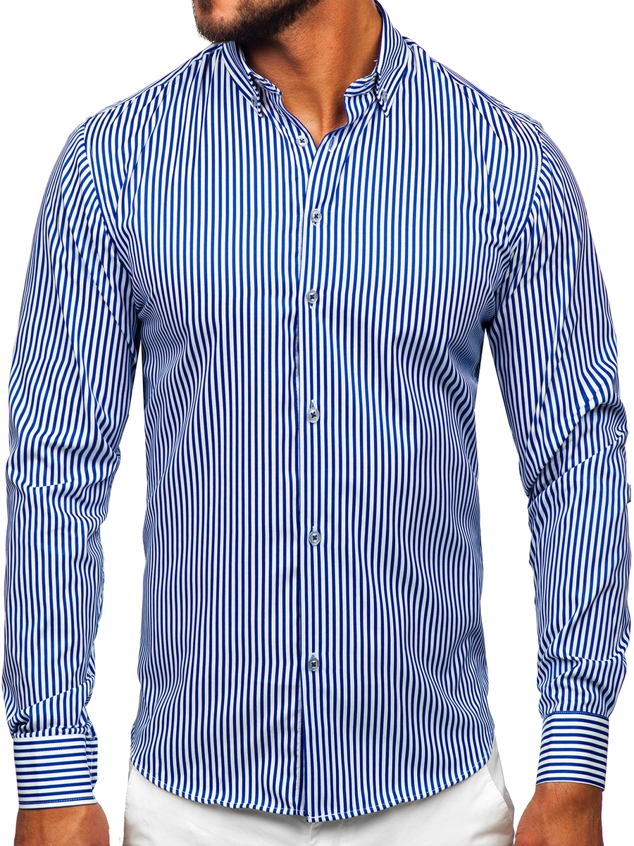 Must have randig långärmad skjorta 22731 från Bolf-kollektionen. Knäpps med knappar, med justerbara ärmslut. Tillverkad av 80% bomull och 20% polyester, vilket gör den väldigt behaglig att ta på och bekväm. Den slankar silhuetten perfekt och accentuerar axlarna. Denna eleganta skjorta passar för officiella tillfällen, där den kommer att vara fantastisk i kombination med en jacka, men också för mer avslappnad styling, för en dejt eller en födelsedagsfest. Finns i elva färger.