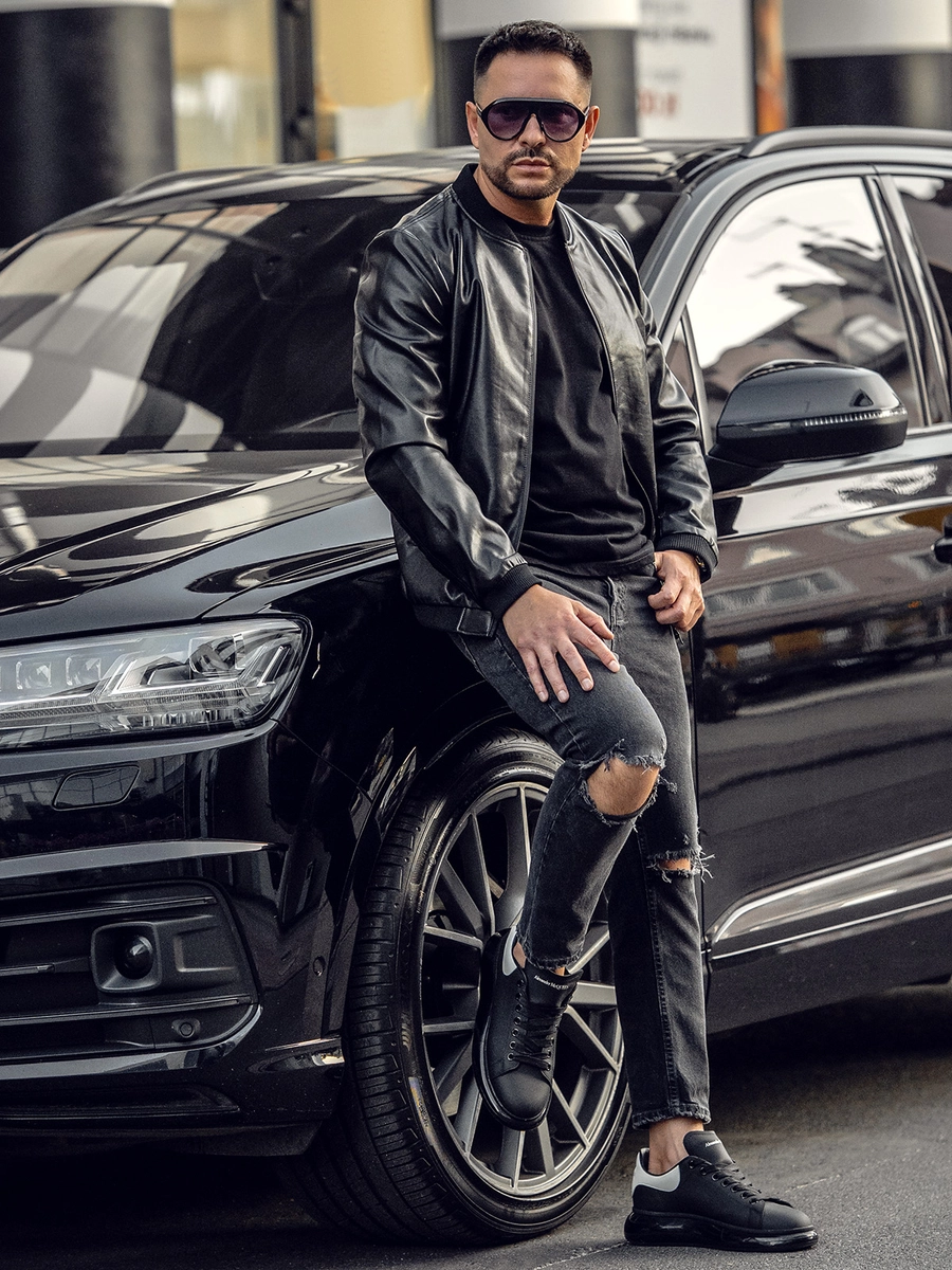 Klassisk svart bomberjacka i läder för män 6803A från Bolf-kollektionen. Tillverkad av högkvalitativa material, vilket gör den mycket hållbar och kommer säkerligen att fungera under många säsonger. Det klassiska snittet framhäver silhuetten perfekt och ger elegans och stil. Det är en tidlös del av herrgarderoben som passar både avslappnade och mer formella stiliseringar. Den kan bäras både dagligen med jeans och vid speciella tillfällen i kombination med en skjorta och chinos.