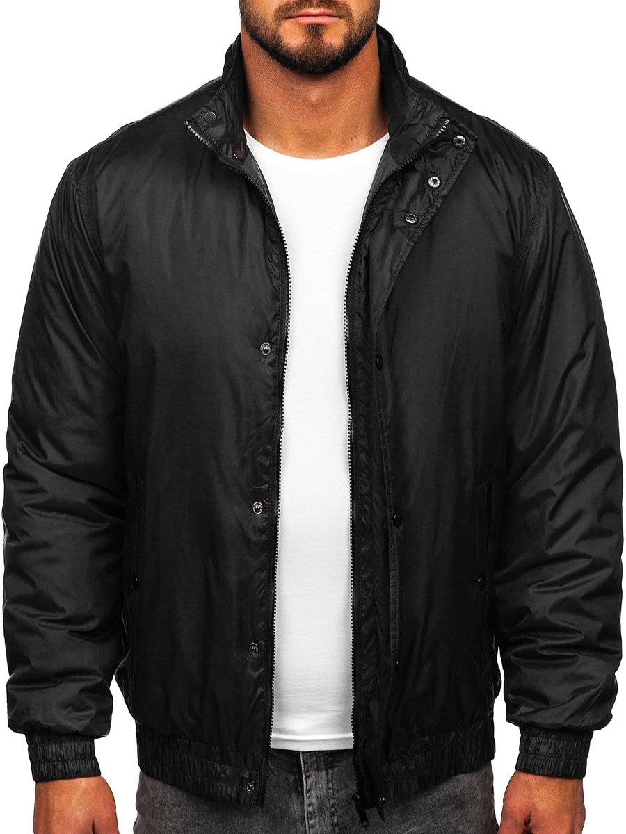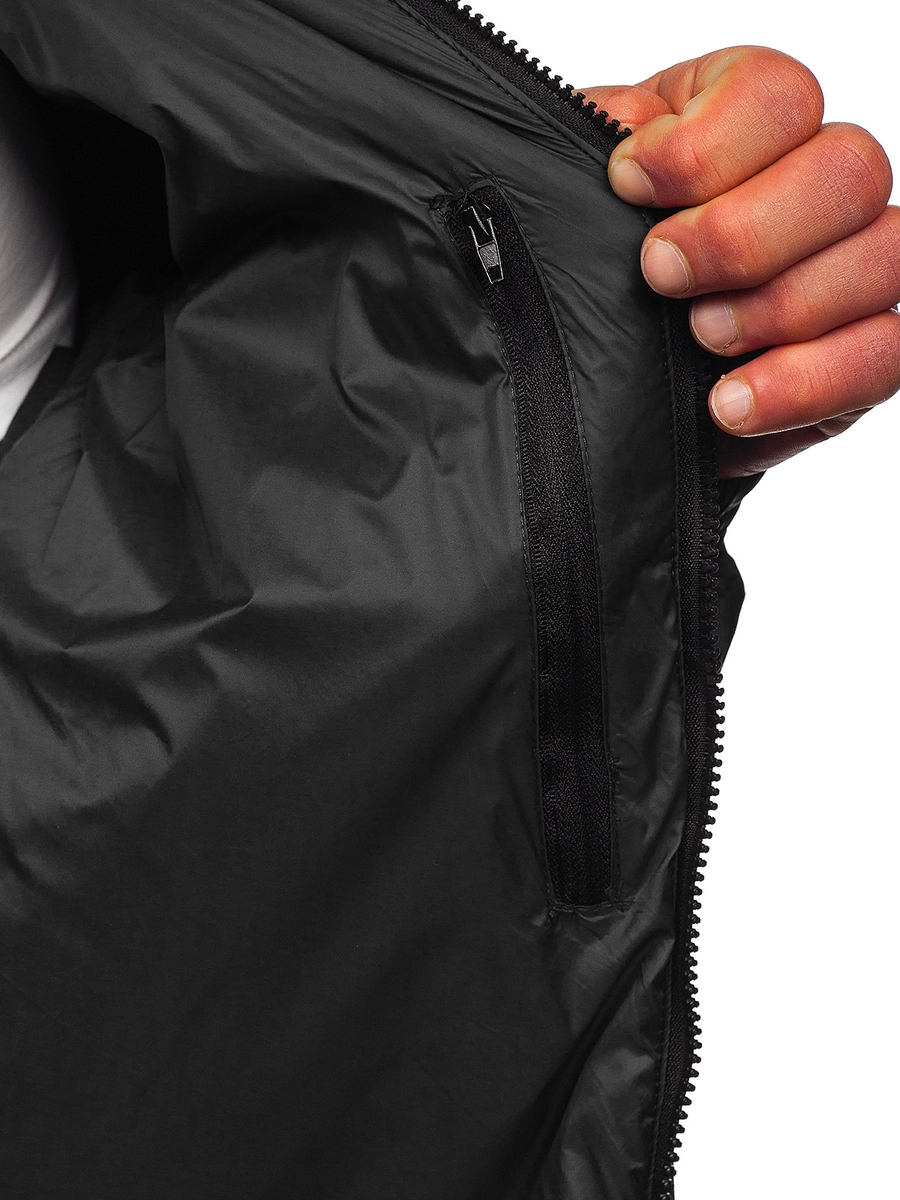 Fantastisk svart herrjacka med dold huva 5M3102 från Bolf-kollektionen. Den dolda huvan skyddar mot hav och vind och gör att du kan skapa styling för många olika tillfällen. Jackan kommer att matcha både sportkläder och mer eleganta. Det är därför det är värt att kombinera den med en träningsoverall eller en skjorta och jeans. Jackan är mycket bekväm, lätt och begränsar inte rörelsen. Den har rymliga ytterfickor som stängs med dragkedja och tryckknappar. Den finns i två färger.