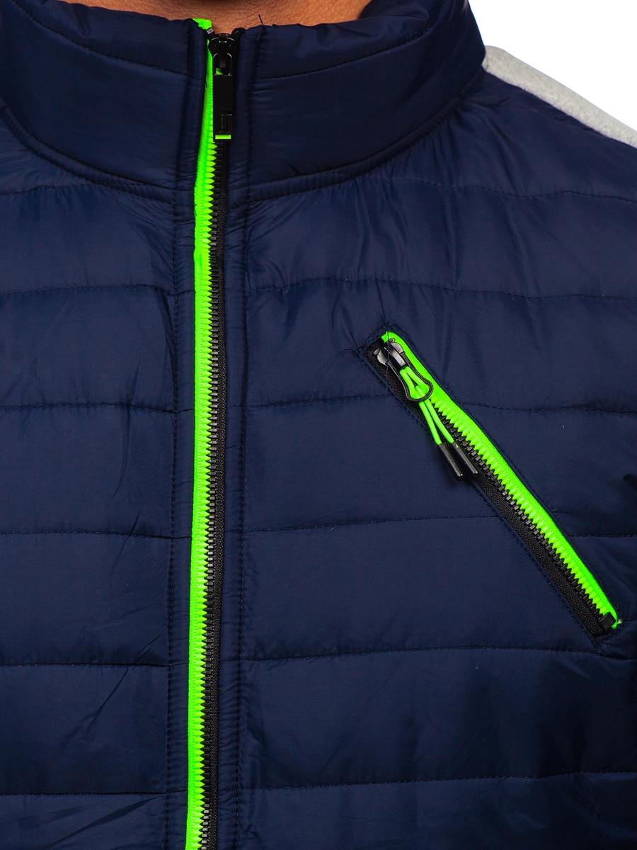 Fantastisk quiltad herrjacka 8M909 från Bolf-kollektionen. Jackan knäpps med dragkedja och har en ståkrage som ger skydd mot vinden en svalare dag. Den har rymliga yttre fickor med dragkedja. Den mörka färgen gör det lätt att kombinera den med andra klädesplagg och de färgglada dragkedjorna ger jackan ett unikt, moderiktigt utseende. Passar bra med joggingbyxor och jeans. Finns i två färger.