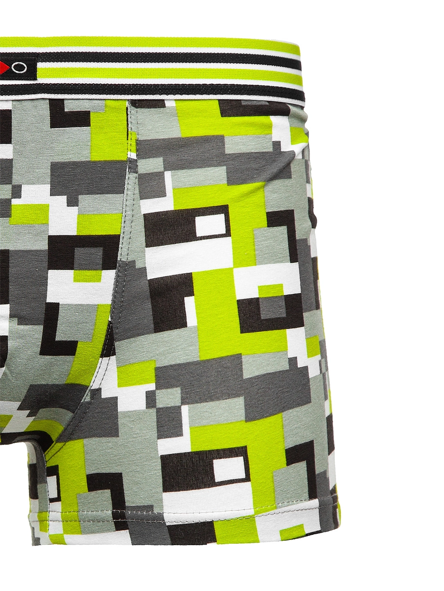 Universal flerfärgade boxershorts för män 1BE750-3P från Bolf-kollektionen. Boxershortsen är gjorda av 95 % bomull och 5 % elastan, vilket gör dem väldigt flexibla och mjuka att ta på. Detta säkerställer hög bärkomfort. De sitter bra på kroppen tack vare dragsko i midjan. Setet innehåller tre färger: grön, röd och blå.