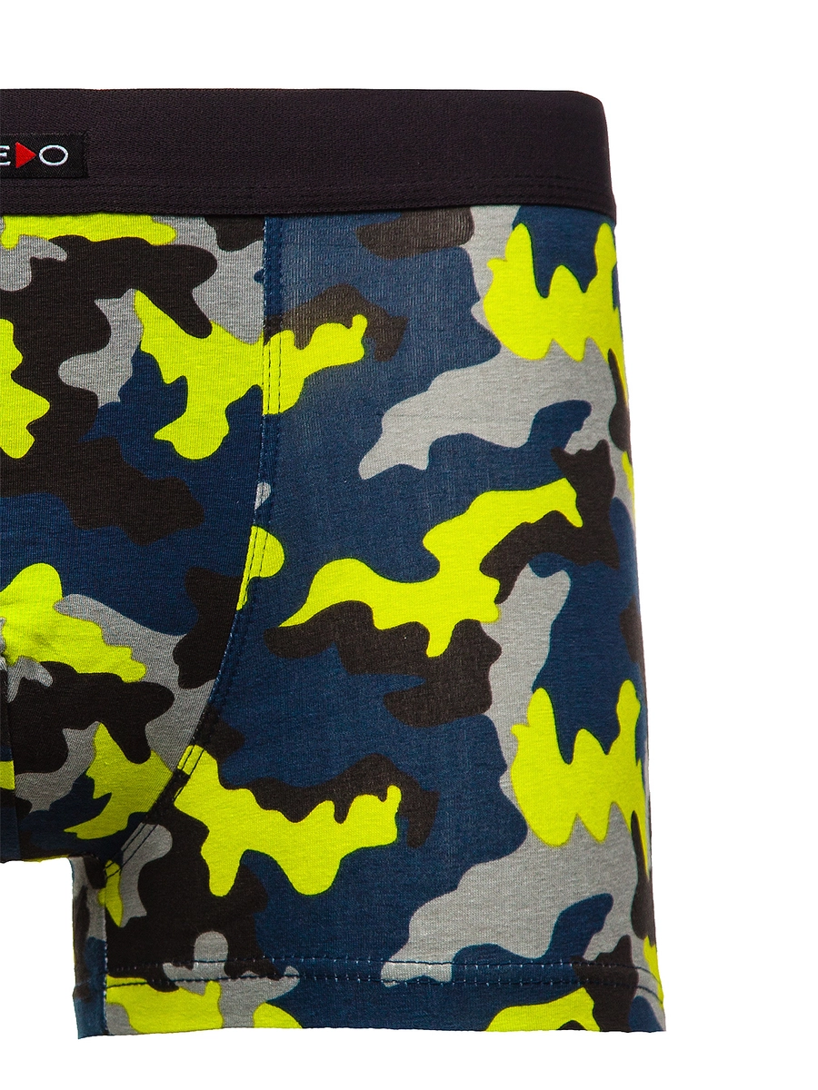 Universal flerfärgade boxershorts för män 1BE746-3P från Bolf-kollektionen. Det färgglada mönstret ger en ungdomlig, moderiktig accent. De är gjorda av 95% bomull och 5% elastan, vilket säkerställer bra elasticitet och hållbarhet. Boxershorts är behagliga att ta på och begränsar inte rörelsen. Setet innehåller boxers i grönt, rött och blått.