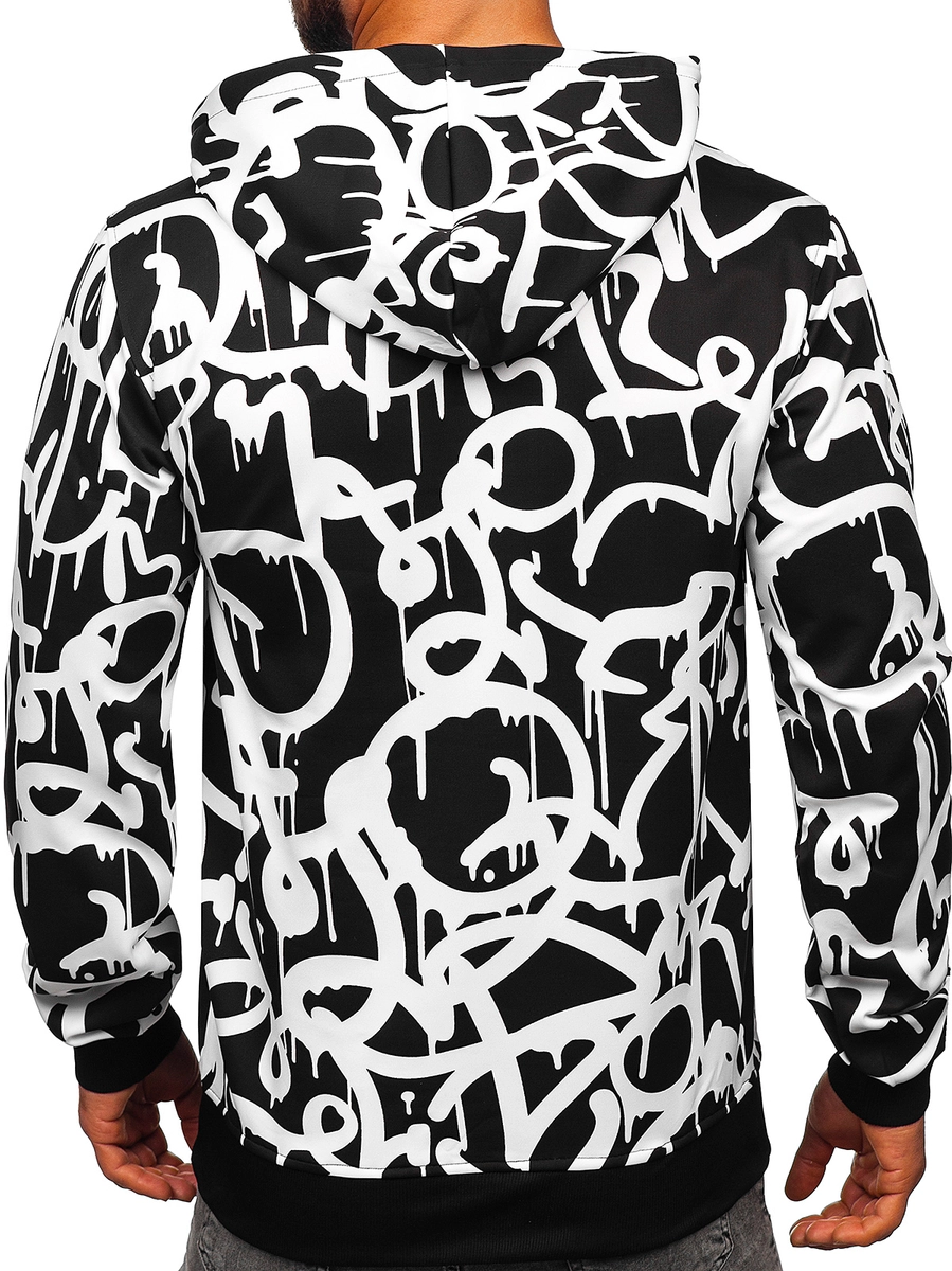 Är du en älskare av sweatshirts och intressanta mönster? Då är den svarta och vita herr sweatshirt 8B1152 från Bolf-kollektionen något för dig! Tröjans klassiska snitt, justerbar huva och en rymlig känguruficka garanterar full komfort när du bär den. Spår längst ner på tröjan och ärmarna gör att tröjan passar bra till figuren. Den är gjord av behagligt att ta på och flexibelt material. Tack vare den presenterade modellen kommer du att sticka ut även när du vilar hemma. Tröjan kommer att se fantastisk ut med både träningsbyxor och jeans.