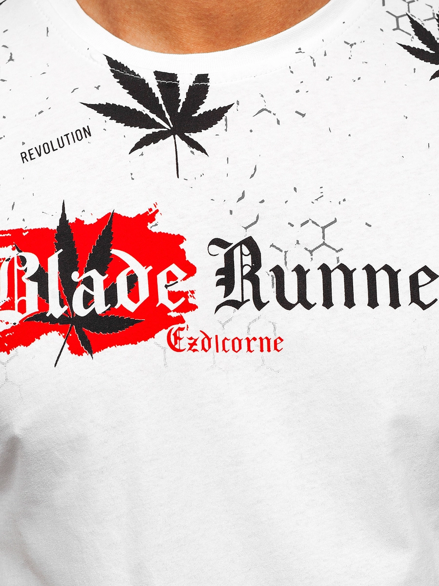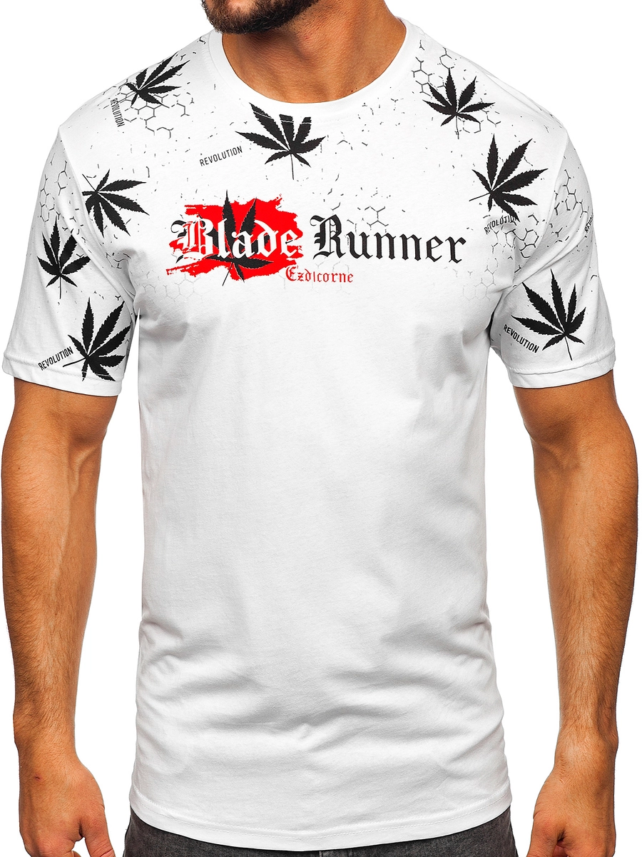 Snygg vit herrtröja i bomull 14744 från Bolf-kollektionen. Den runda halsen och korta ärmar framhäver axlarna väl. Den smala passformen gör att skjortan passar perfekt till figuren. T-shirt gjord av 100% bomull, tack vare vilken den är extremt mjuk och behaglig att ta på. Trycket på framsidan väcker uppmärksamhet och ger en ungdomlig karaktär. T-shirten kommer att se bra ut med en tröja med dragkedja och joggingbyxor.
