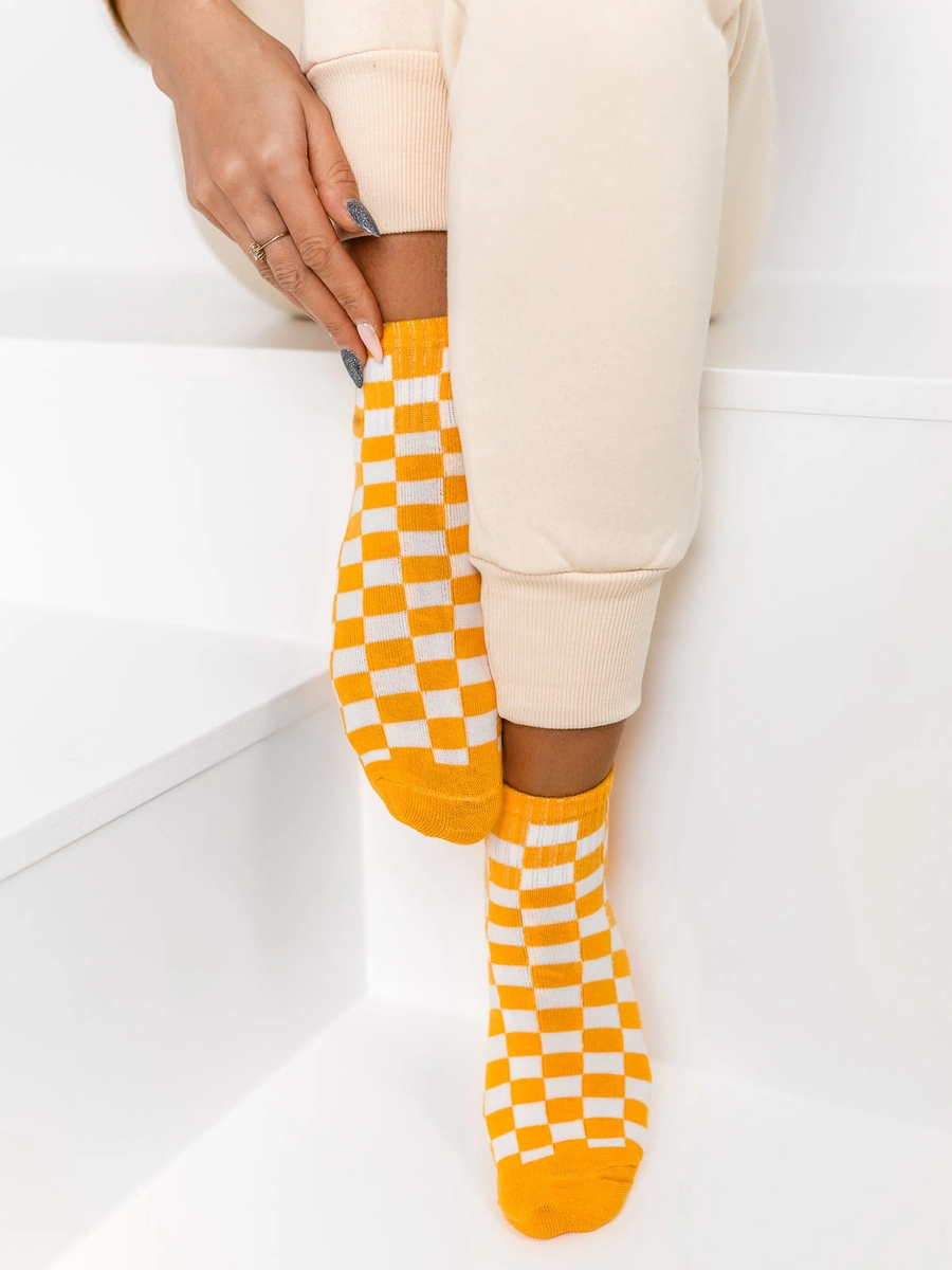 Ge din outfit färg och energi med dessa flerfärgade damstrumpor J32110-6P från Bolf-kollektionen. Deras färgglada rutmönster kommer att göra även den enklaste stiliseringen unik. De är gjorda av mjuk bomull och ger dig maximal bärkomfort hela dagen. Materialet är exceptionellt mjukt och känsligt vid beröring, vilket gör att dina fötter känns bekväma och tillfredsställda. De kommer att vara bra att bära med sko samt mer eleganta stövlar.