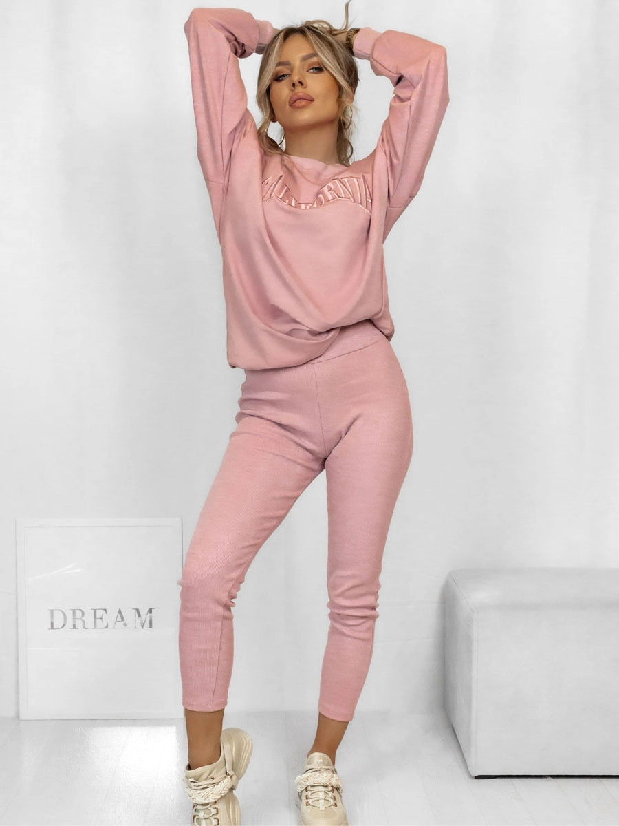 Bekväm träningsoverall för kvinnor California VE50 från Bolf-kollektionen. Träningsoverallen är gjord av högkvalitativ bomull, vilket gör den mjuk och behaglig att ta på. Tillsatsen av elastan i kompositionen säkerställer tillräcklig elasticitet hos materialet. Träningssetet är därför mycket bekvämt och ger rörelsefrihet. Det kommer att fungera på daglig basis och för träning. Tröjan sätts på över huvudet. Byxorna är justerbara i midjan med en kraftig passform som förhindrar att de glider under användning. Tröjan kan också kombineras med jeans eller leggings, vilket skapar en avslappnad outfit för jobbet eller skolan. Tillgänglig i flera olika färger.