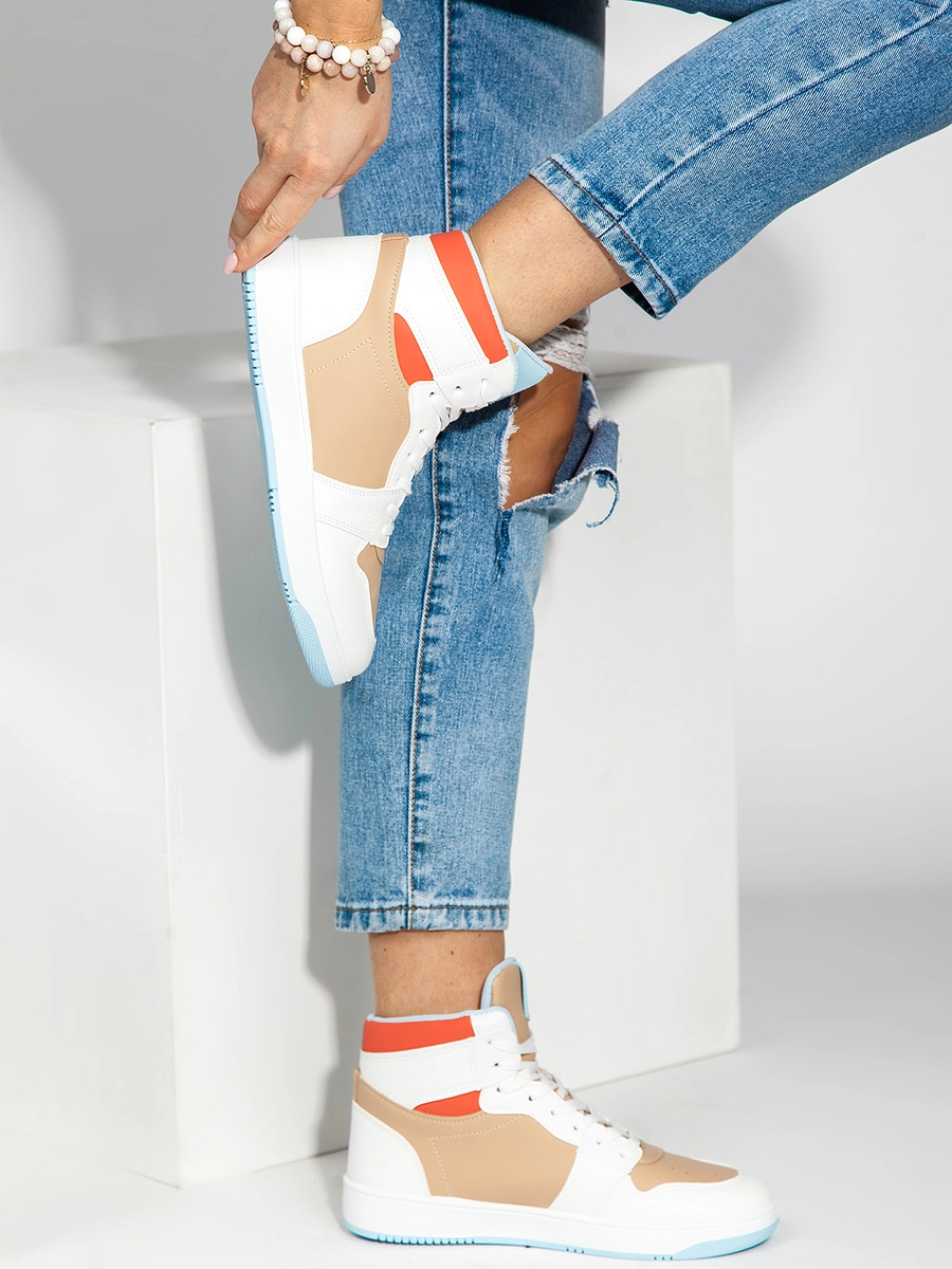 Bekväma beige damsneakers B527 från Bolf-kollektionen. Deras minimalistiska design och neutrala färg gör dem lämpliga för många olika stilar, från avslappnad till mer elegant. Det är värt att kombinera dem med jeans och en dunjacka. De är gjorda av högkvalitativa material, vilket säkerställer hållbarhet och komfort under användning. Ovandeln, som når ner till fotleden, ökar stabiliteten och komforten under gång, och snörningen möjliggör en perfekt passform till fotens form. Insidan av skorna är fodrad med ett mjukt och delikat material som förhindrar skav och säkerställer komfort under hela dagen.